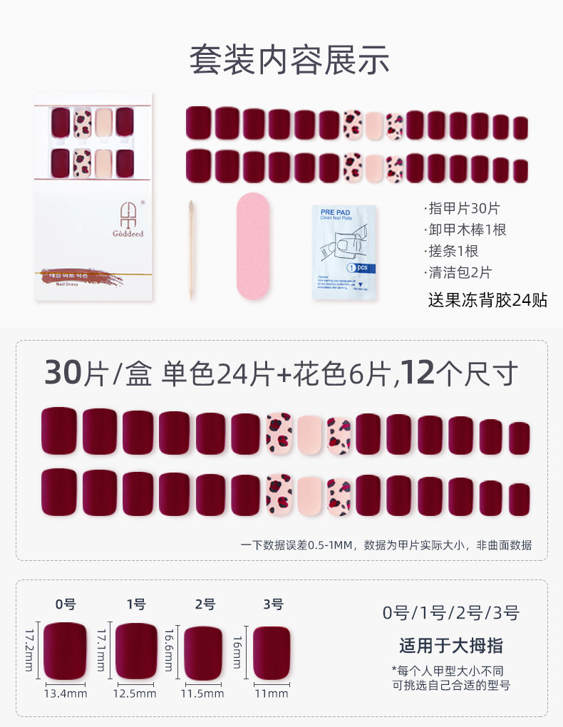 GODDEED甲帝氧气穿戴指甲美甲贴片孕妇女可拆卸30片磨砂