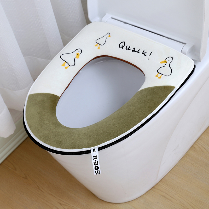 马桶垫秋冬带提手加厚坐垫套家用珊瑚绒保暖拉链款坐垫