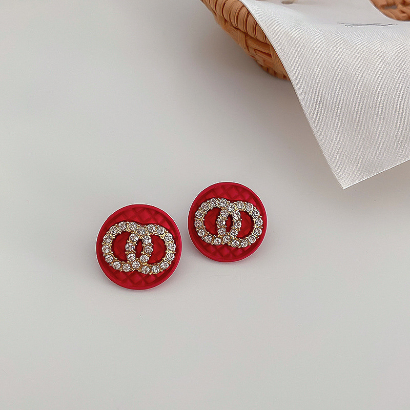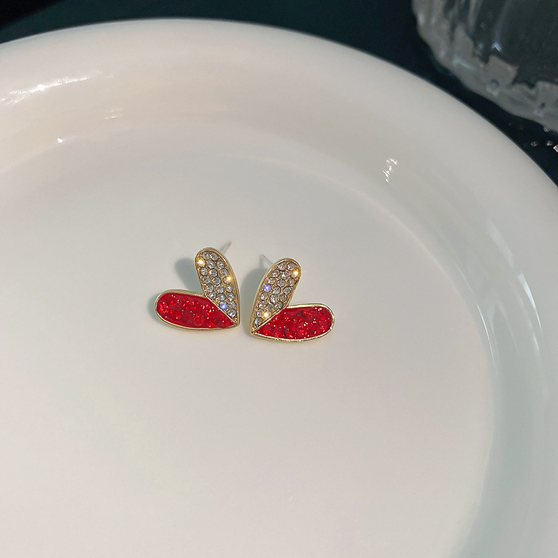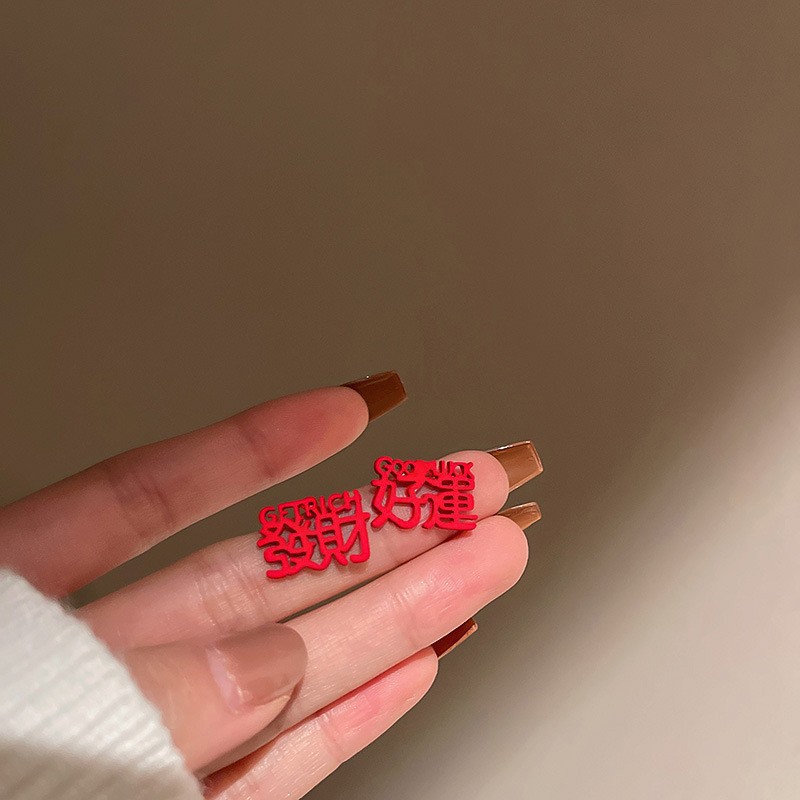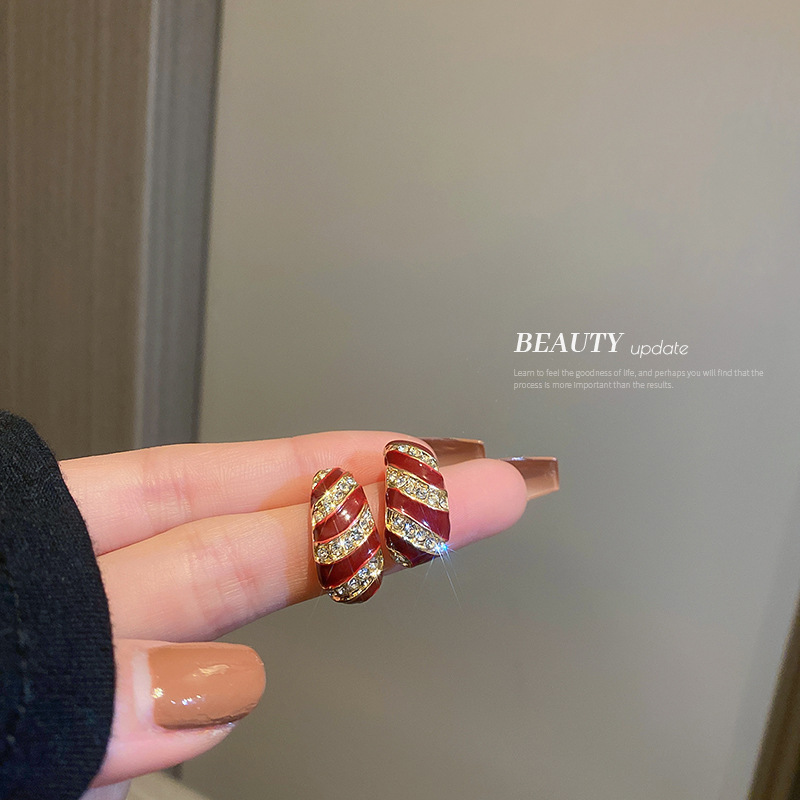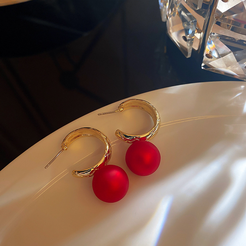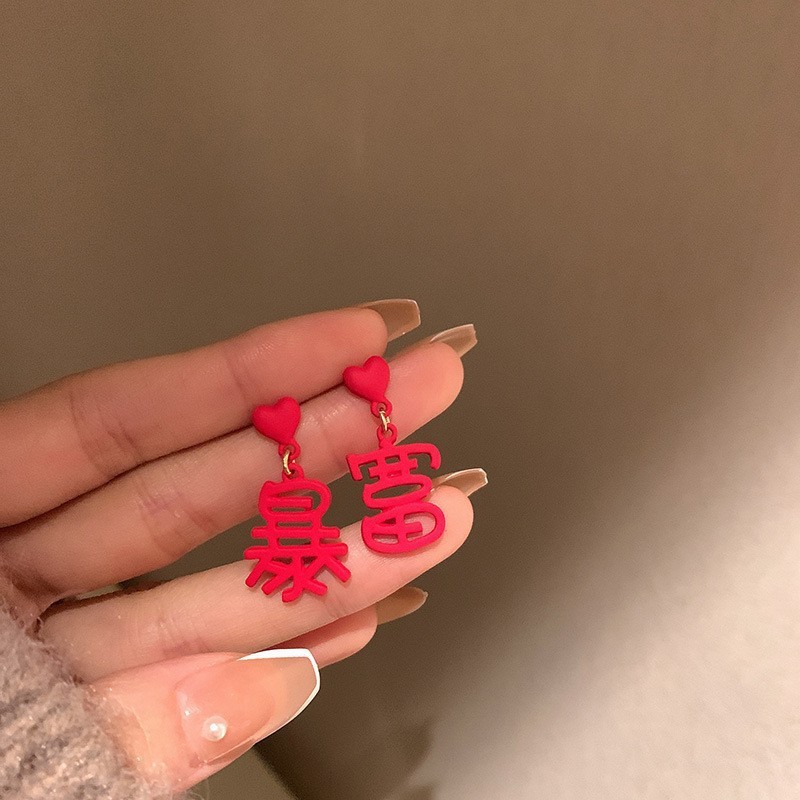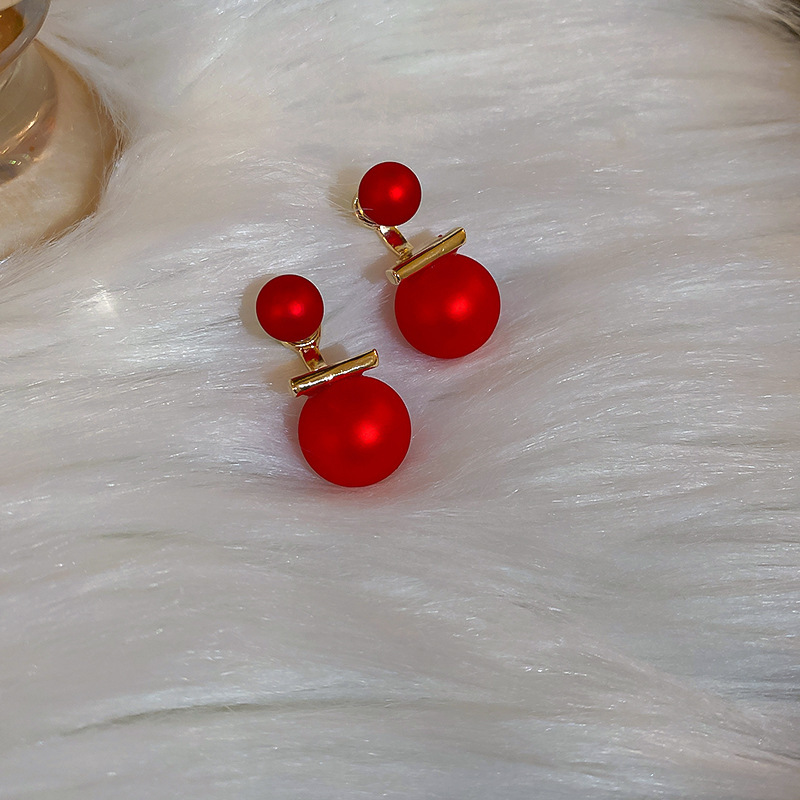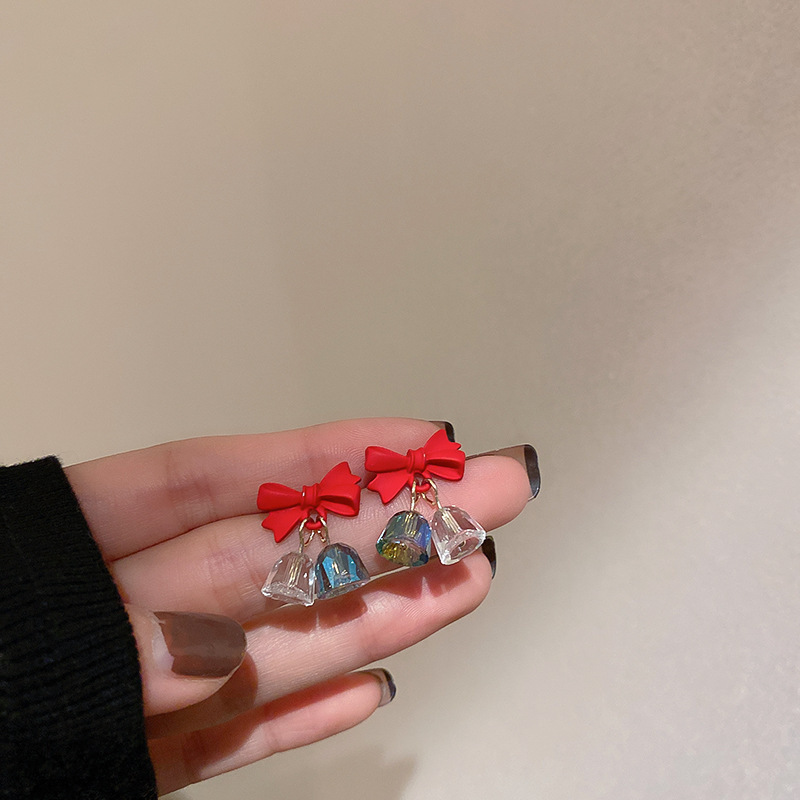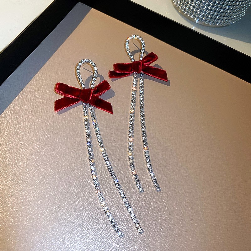 925银针新年红色系植绒耳环集合珍珠蝴蝶结耳钉复古气质秋冬耳饰