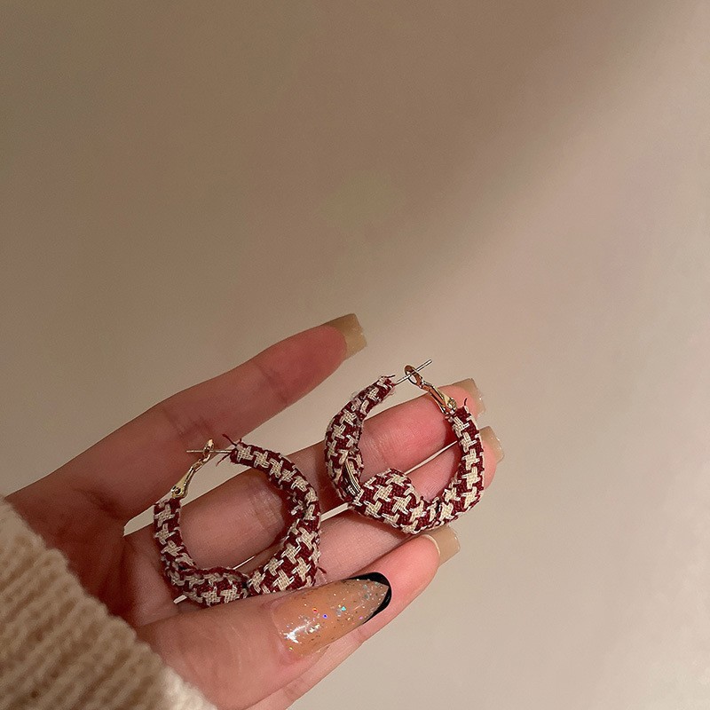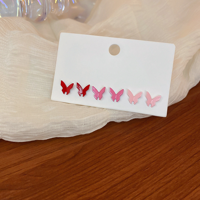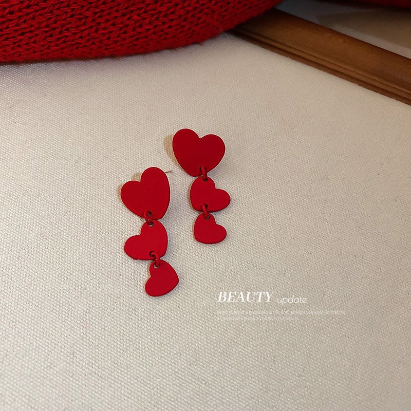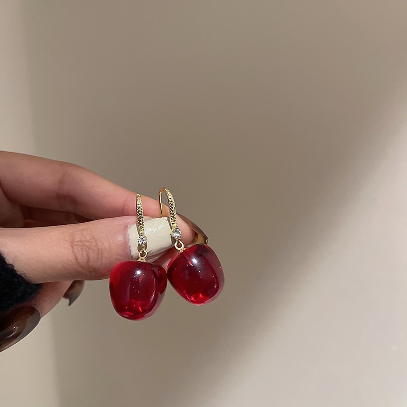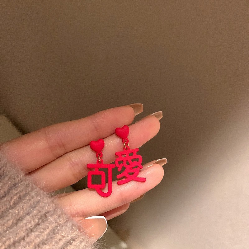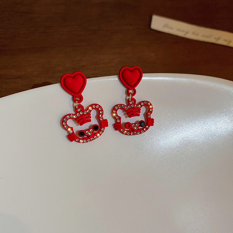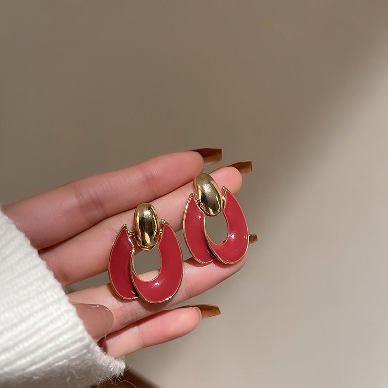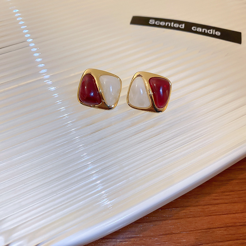 925银针新年红色系植绒耳环集合珍珠蝴蝶结耳钉复古气质秋冬耳饰