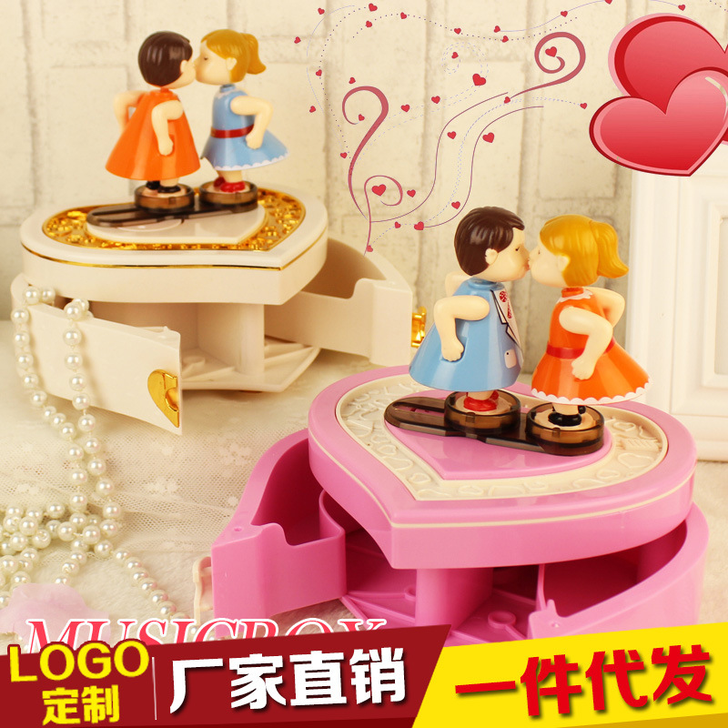 浪漫小情侣桃心音乐盒可爱亲吻娃娃八音盒生日礼物送女生精心摆件
