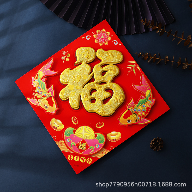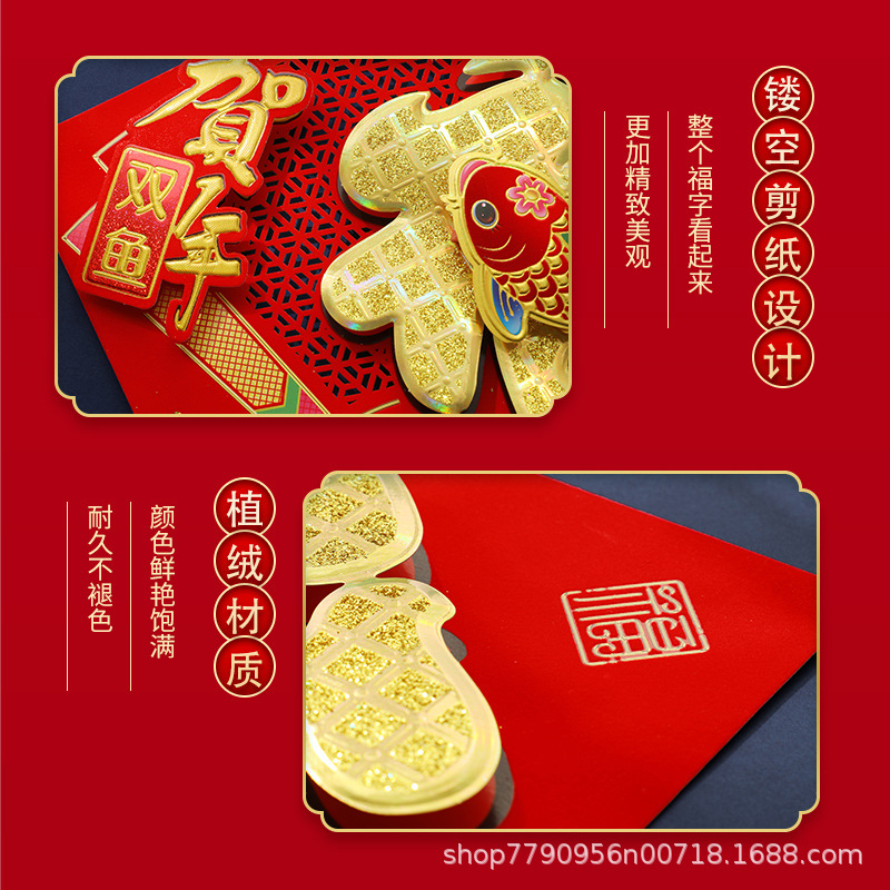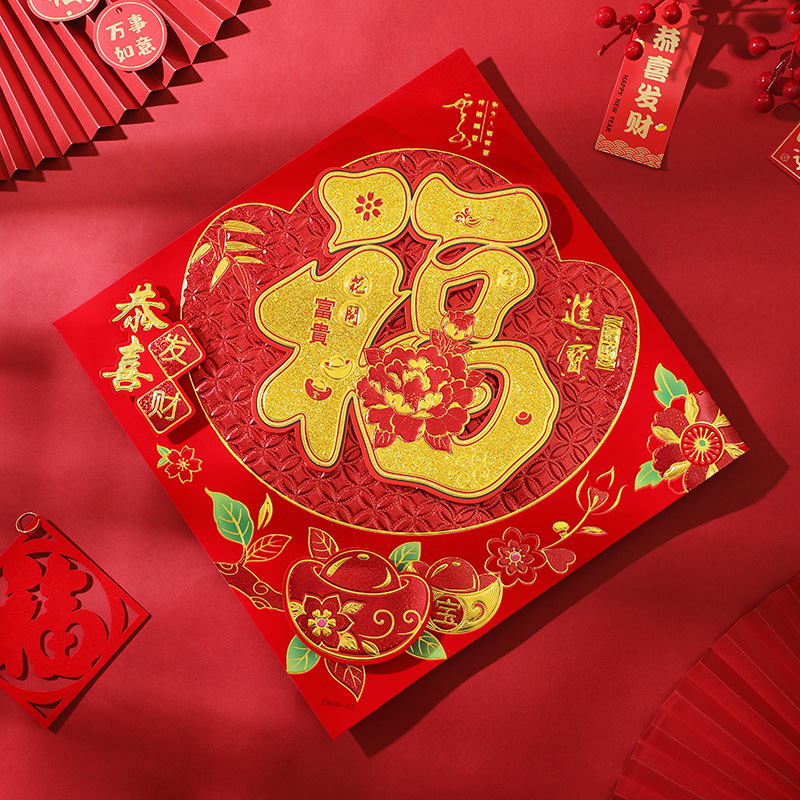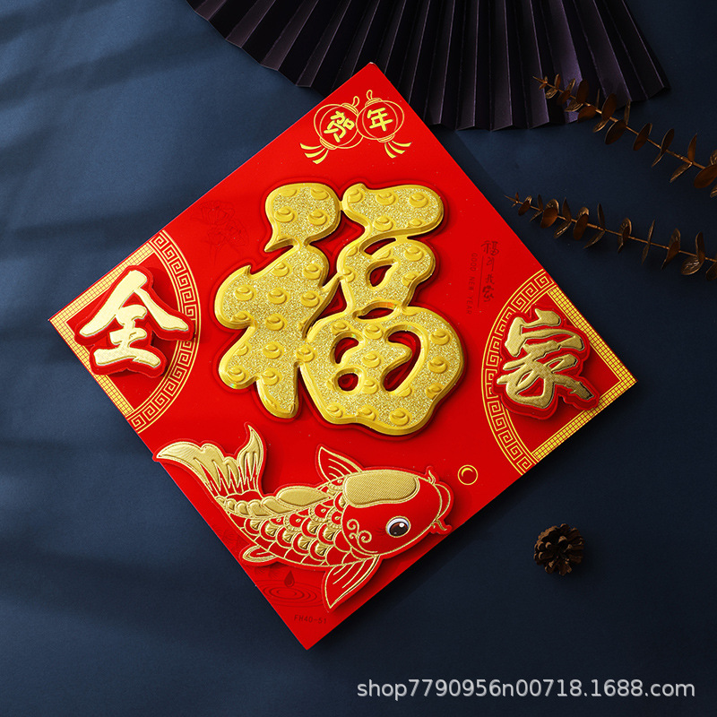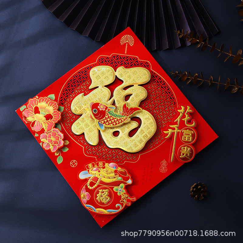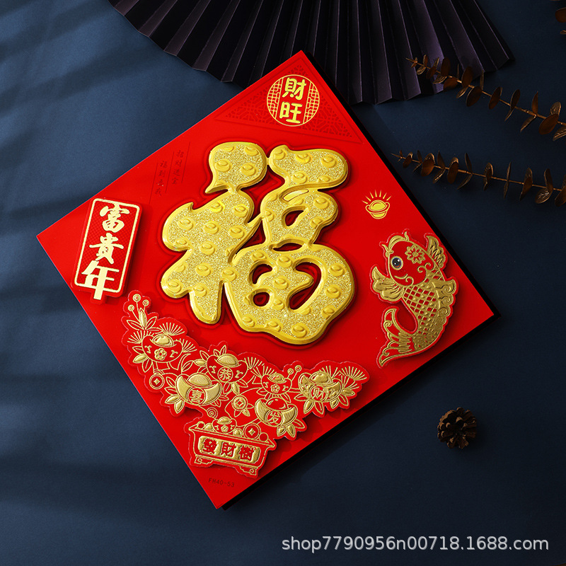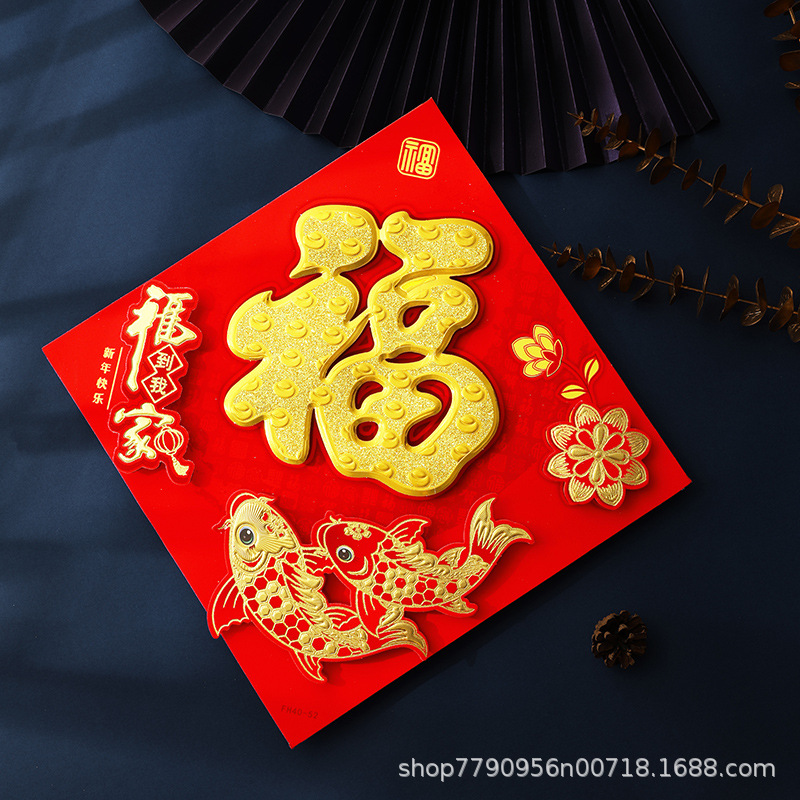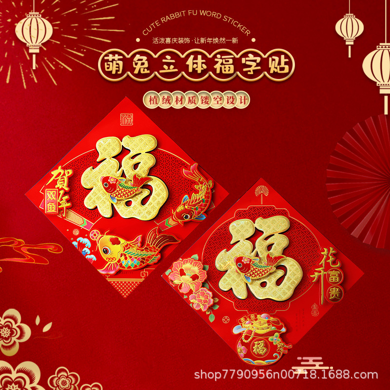 春节用品龙年高档立体植绒福字贴纸门贴墙贴大门过年新年新春福字