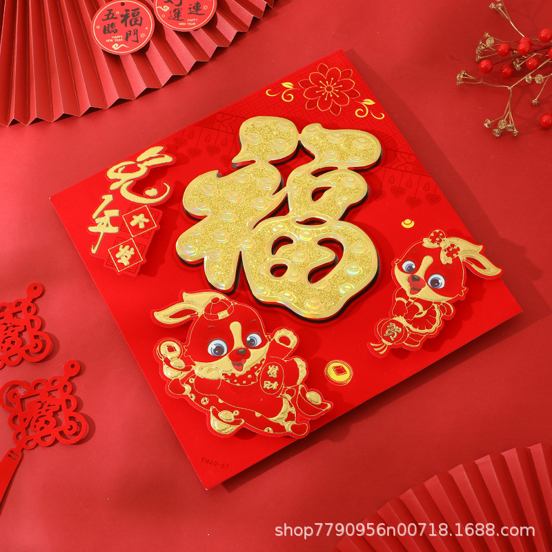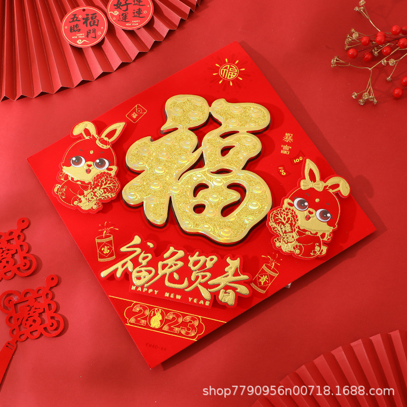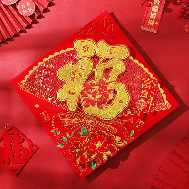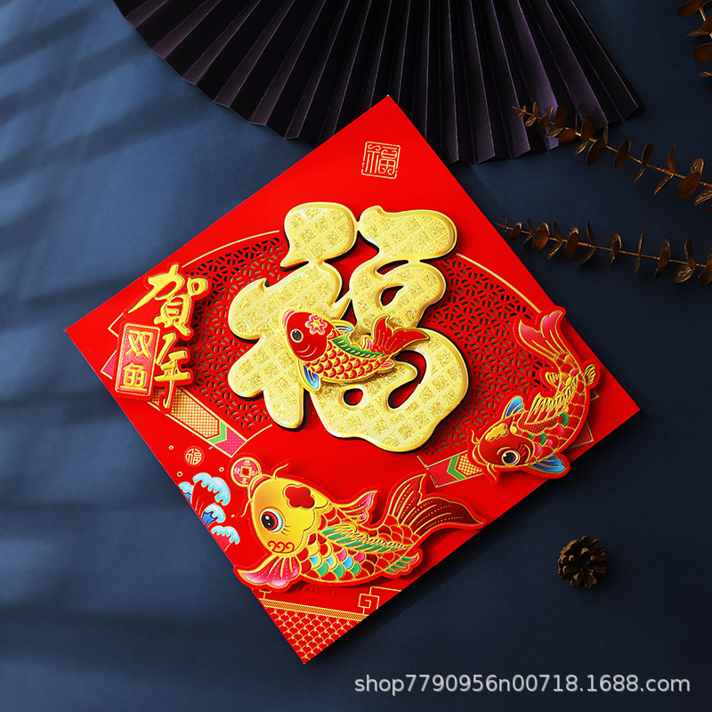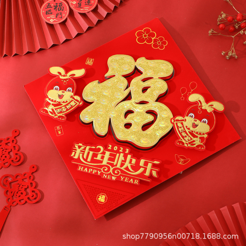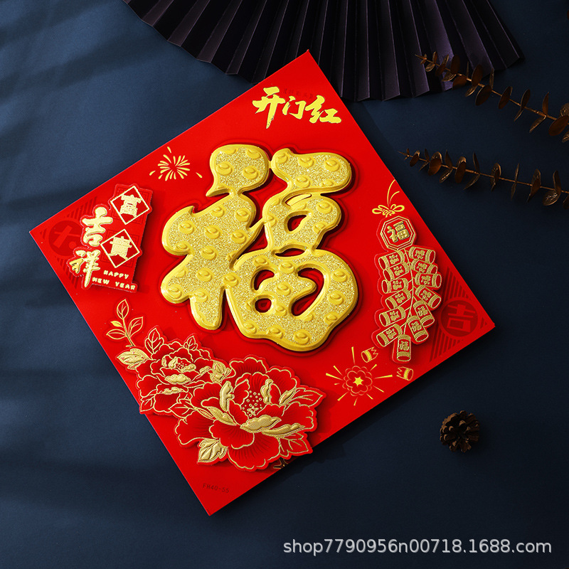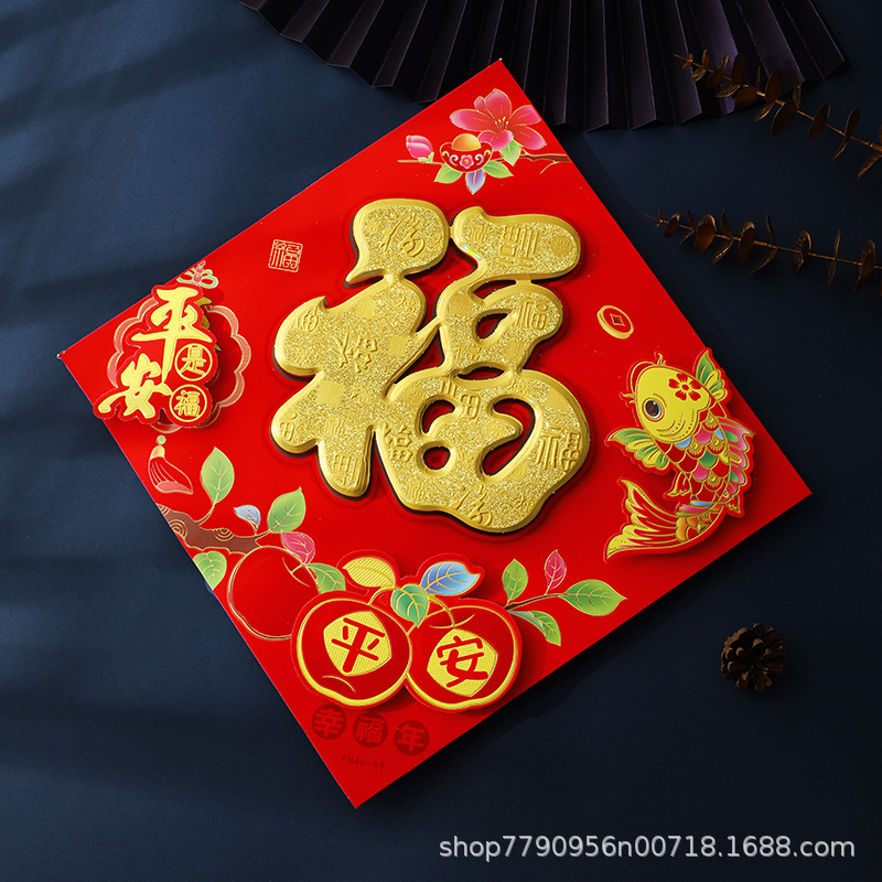春节用品龙年高档立体植绒福字贴纸门贴墙贴大门过年新年新春福字