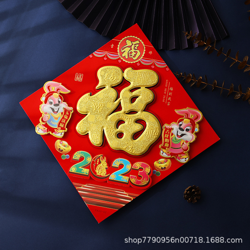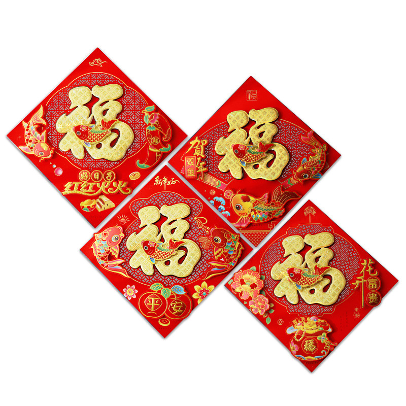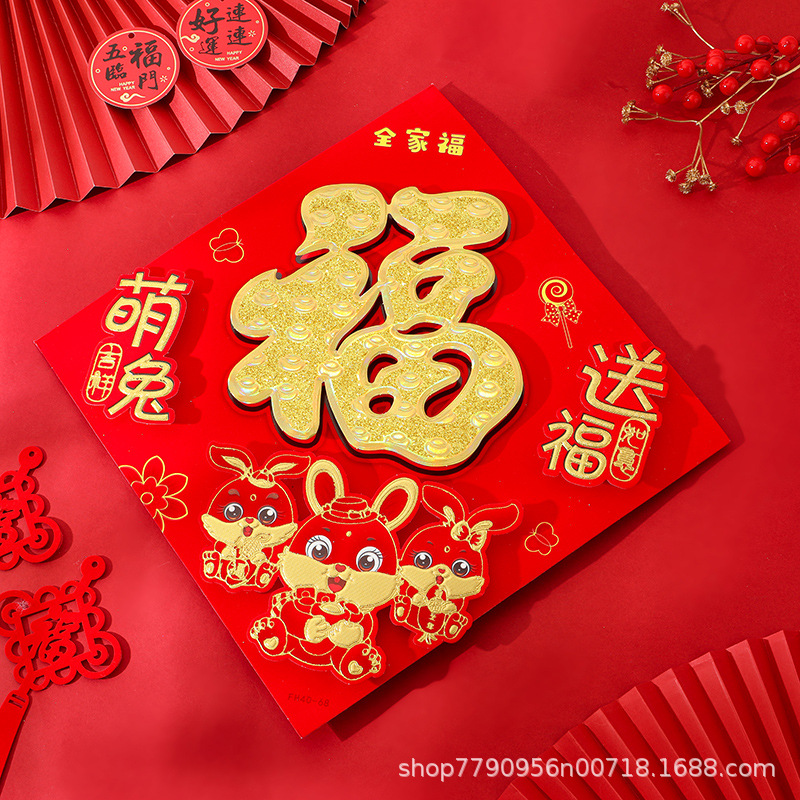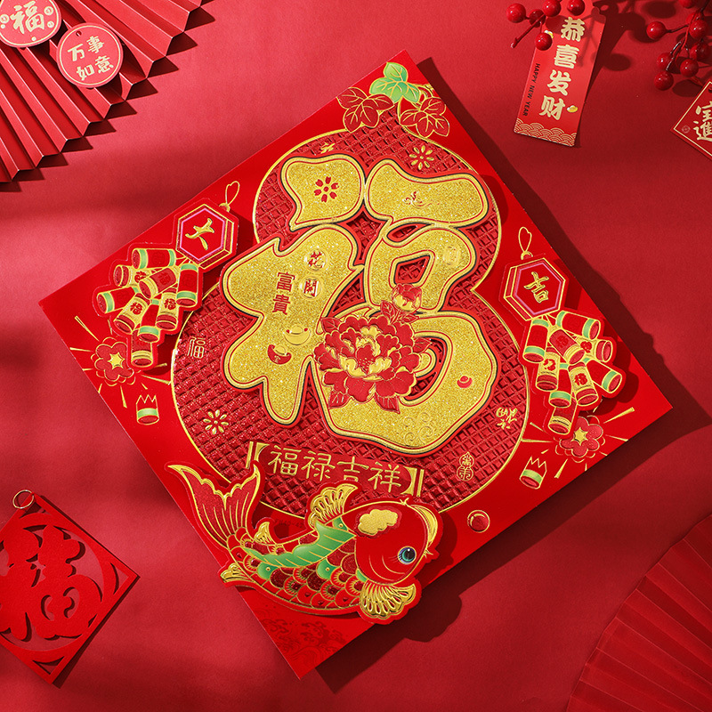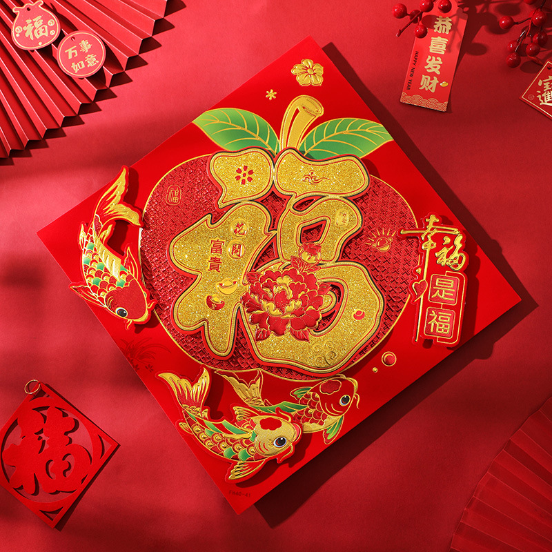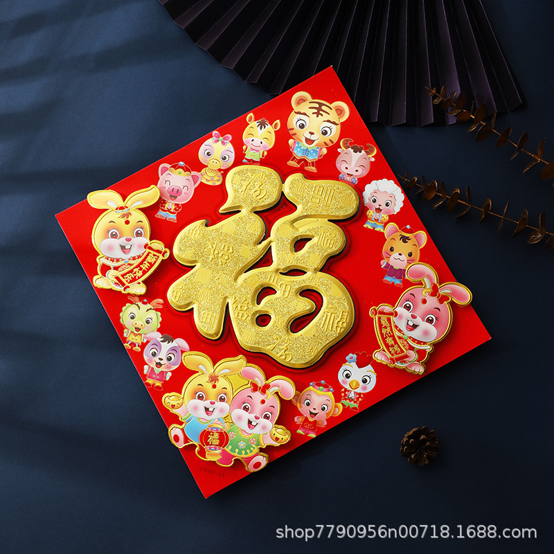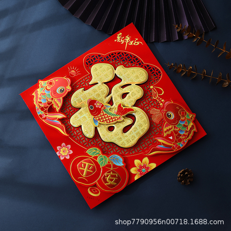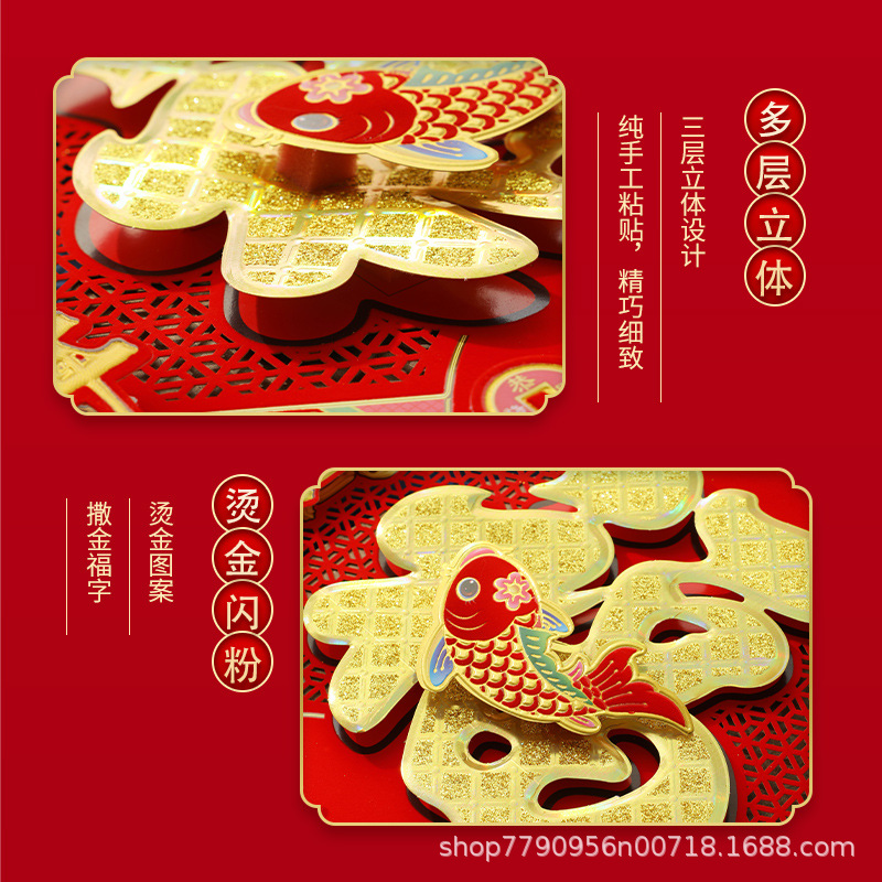 春节用品龙年高档立体植绒福字贴纸门贴墙贴大门过年新年新春福字