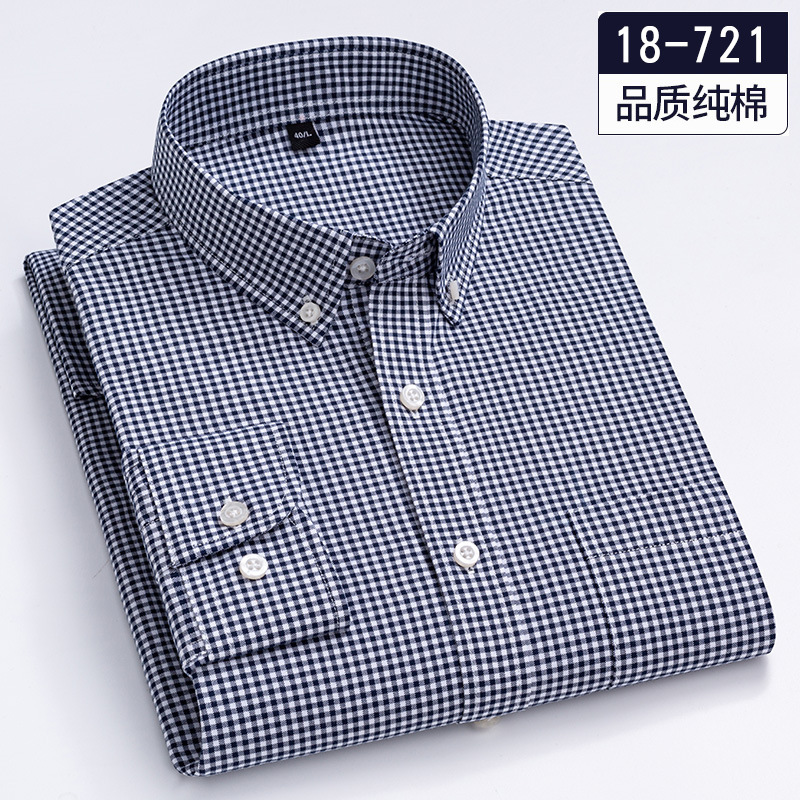 春秋新款男士长袖衬衫纯棉休闲衬衫全棉格子衬衣条纹衬衫一件代发