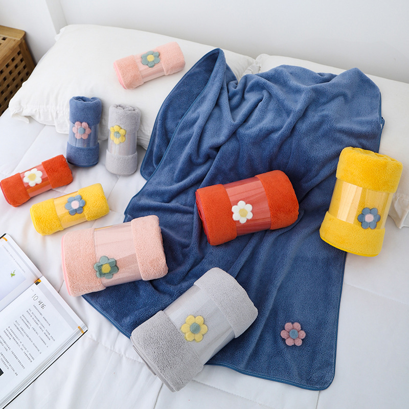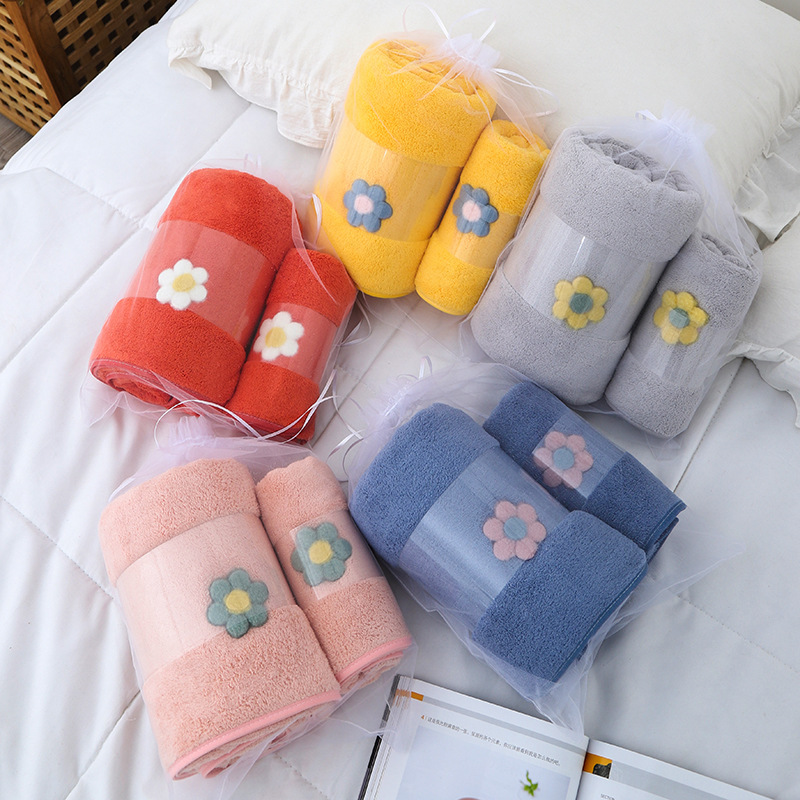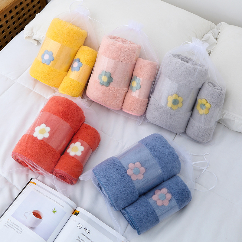 经编珊瑚绒子母套巾加厚毛巾浴巾礼品两件套家用男女情侣浴巾批发