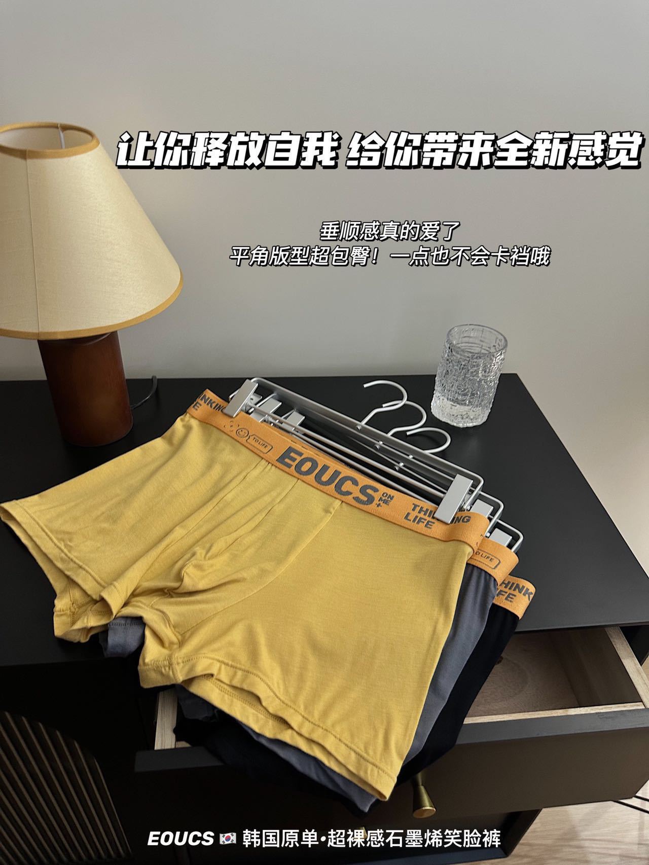 莫代尔韩国原单裸感石墨烯男士内裤舒适透气大码运动平角内裤