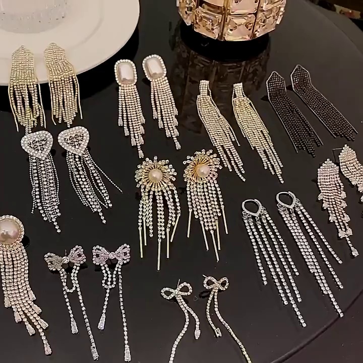 长款流苏耳环女925银针精致满钻ins潮轻奢小众网红同款蝴蝶结耳钉