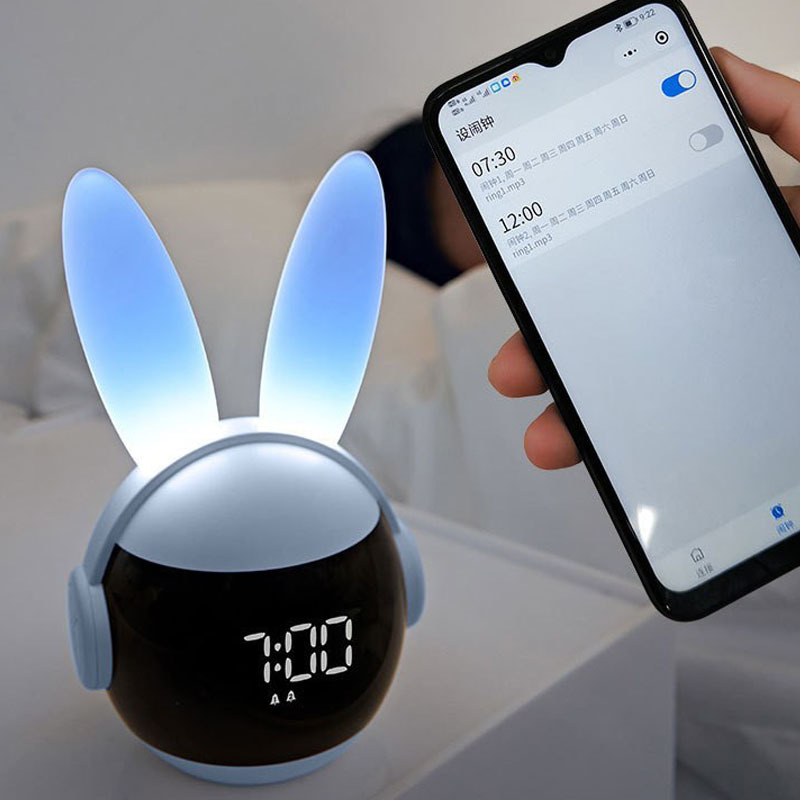 新款彩虹兔子小闹钟夜灯充电创意静音学生床头迷你硅胶儿童灯礼品