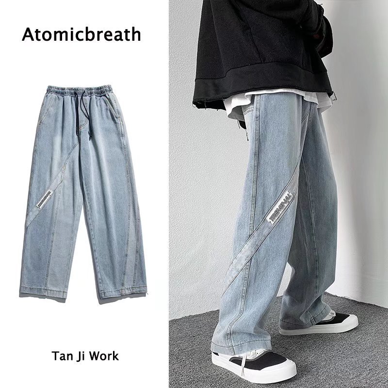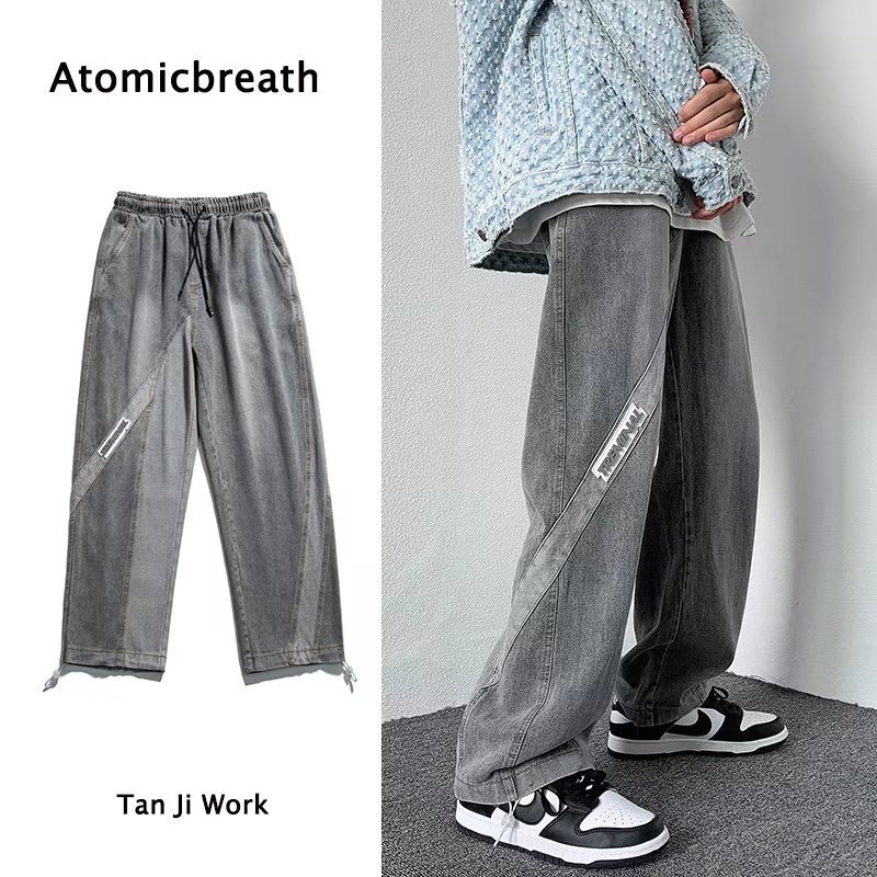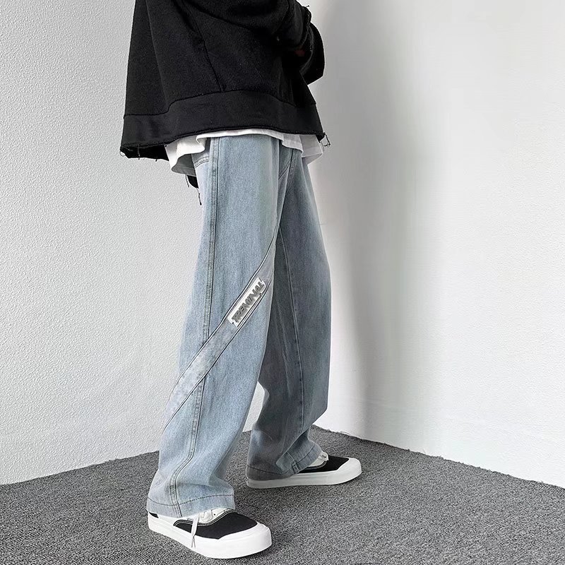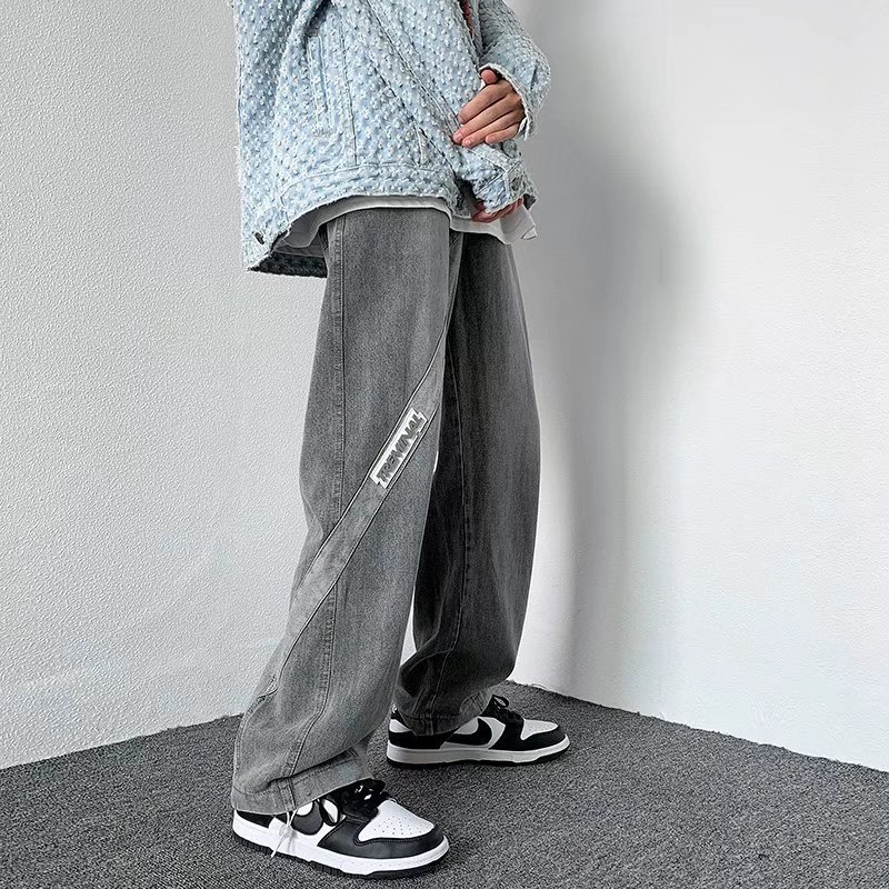 秋季牛仔裤男潮流高街宽松阔腿裤ins港风百搭潮牌直筒拖地长裤子