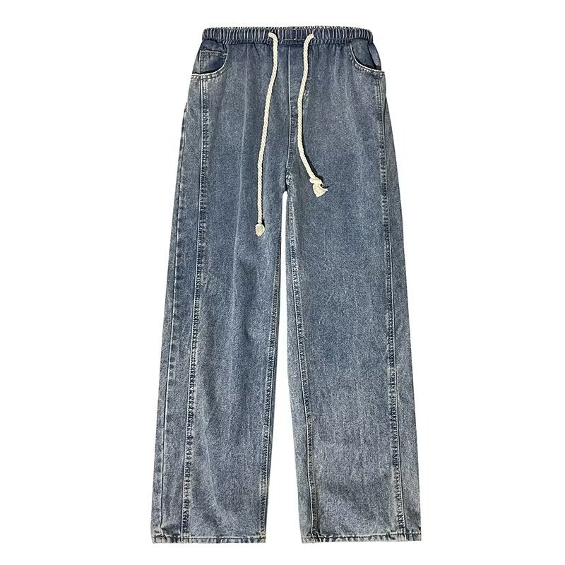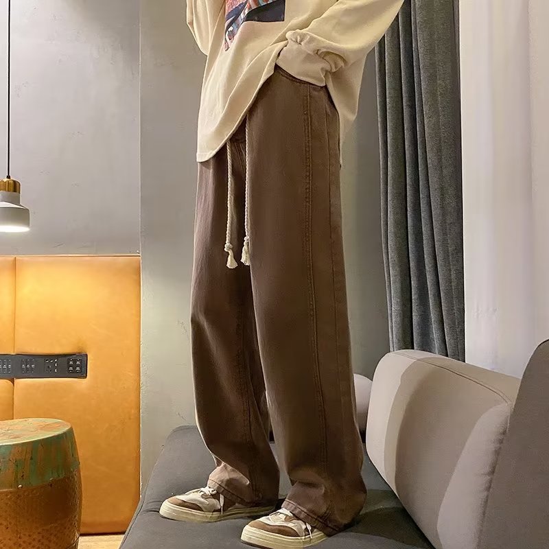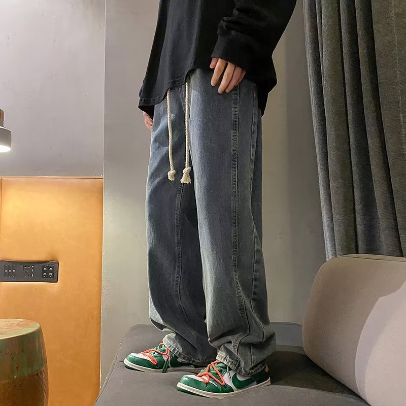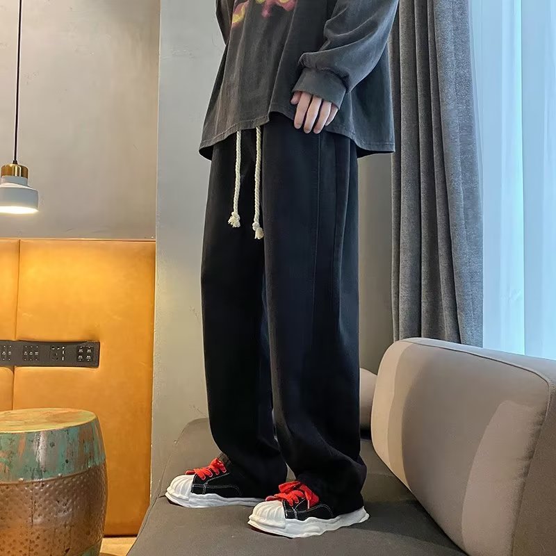 美式复古卫裤男秋冬潮牌水洗做旧阔腿运动裤港风垂感休闲牛仔裤男