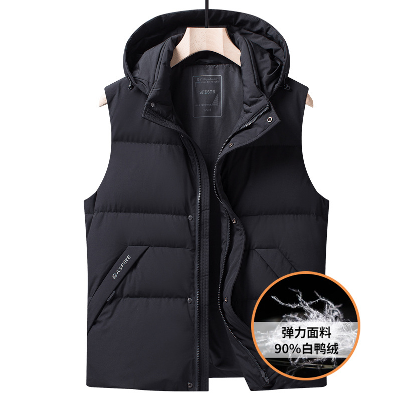 四面弹力百搭连帽羽绒马甲男士秋冬户外保暖背心90白鸭绒外穿坎肩