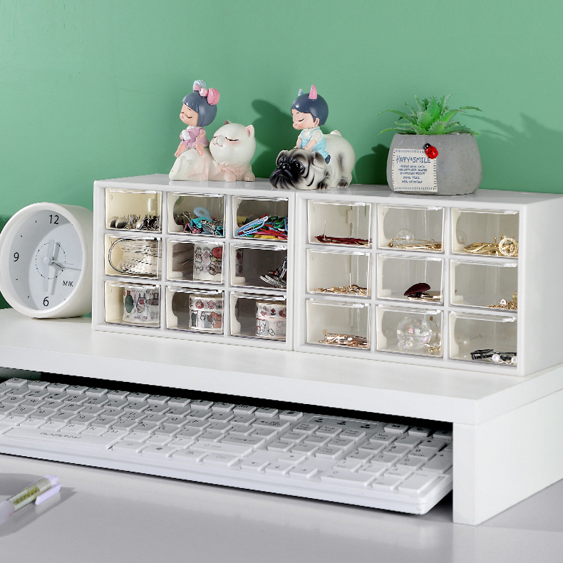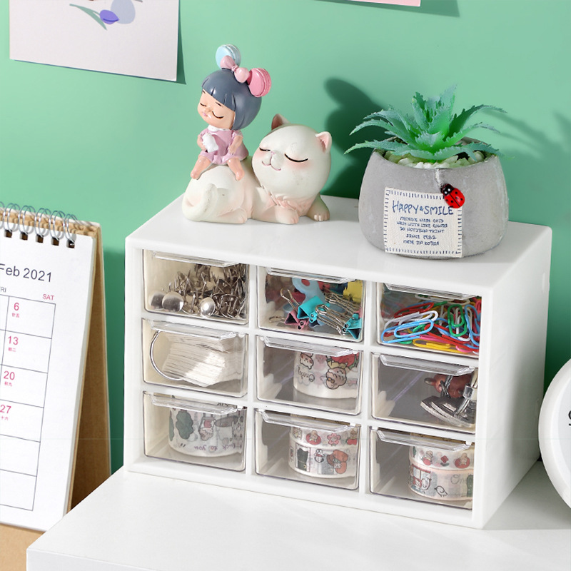 桌面九宫格收纳盒白色透明化妆品化妆盒杂物抽屉式分隔收纳盒