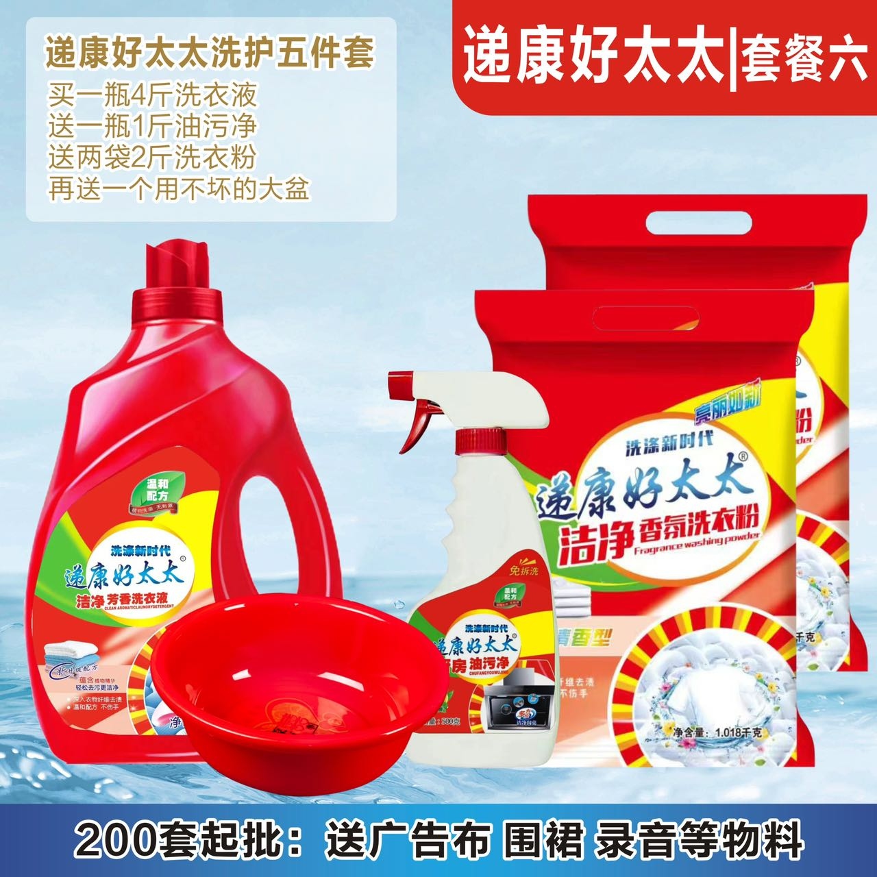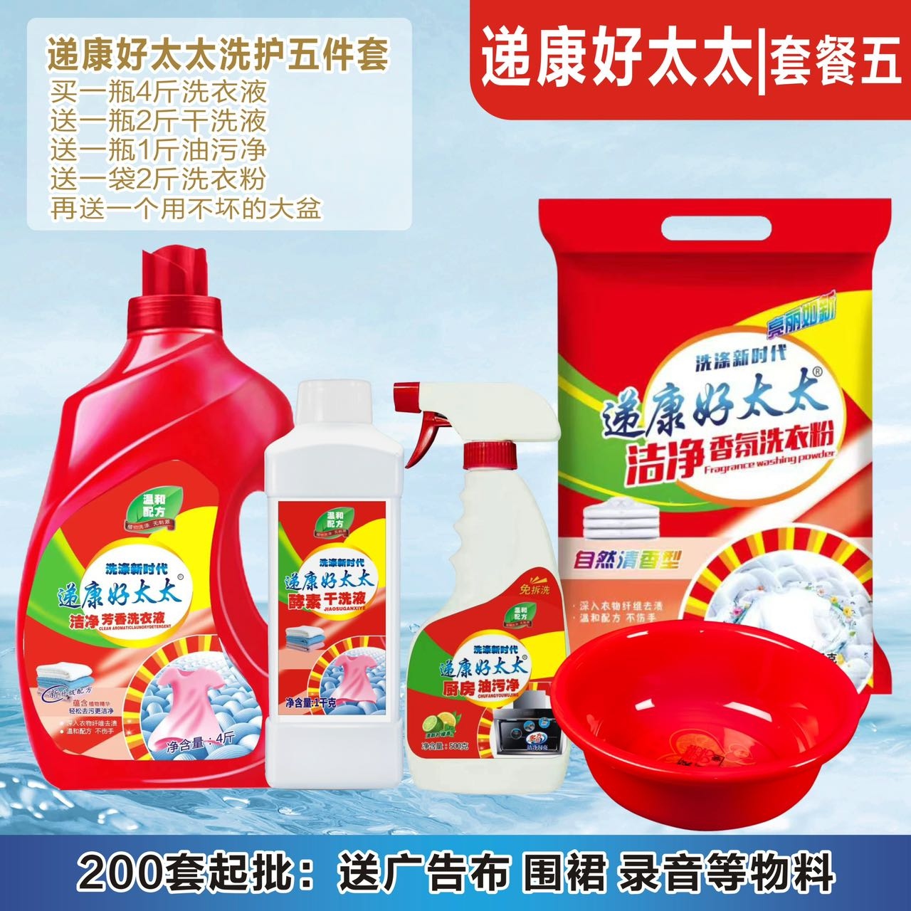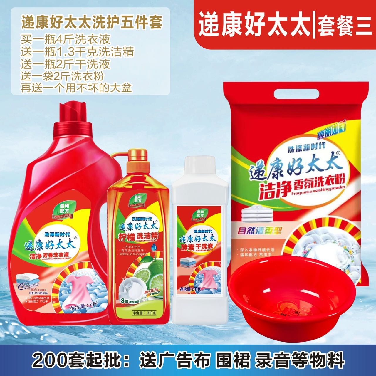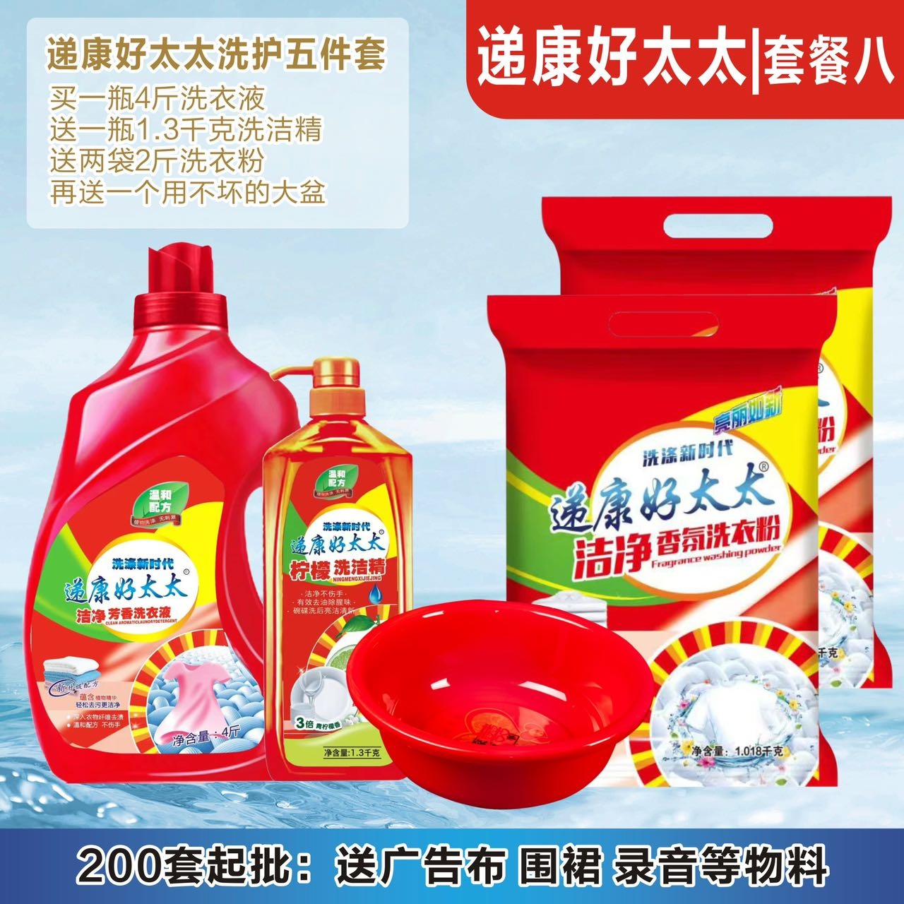 递康好太太日化五件套洗衣液洗衣粉盆4件套地摊纸巾牙膏货源工厂