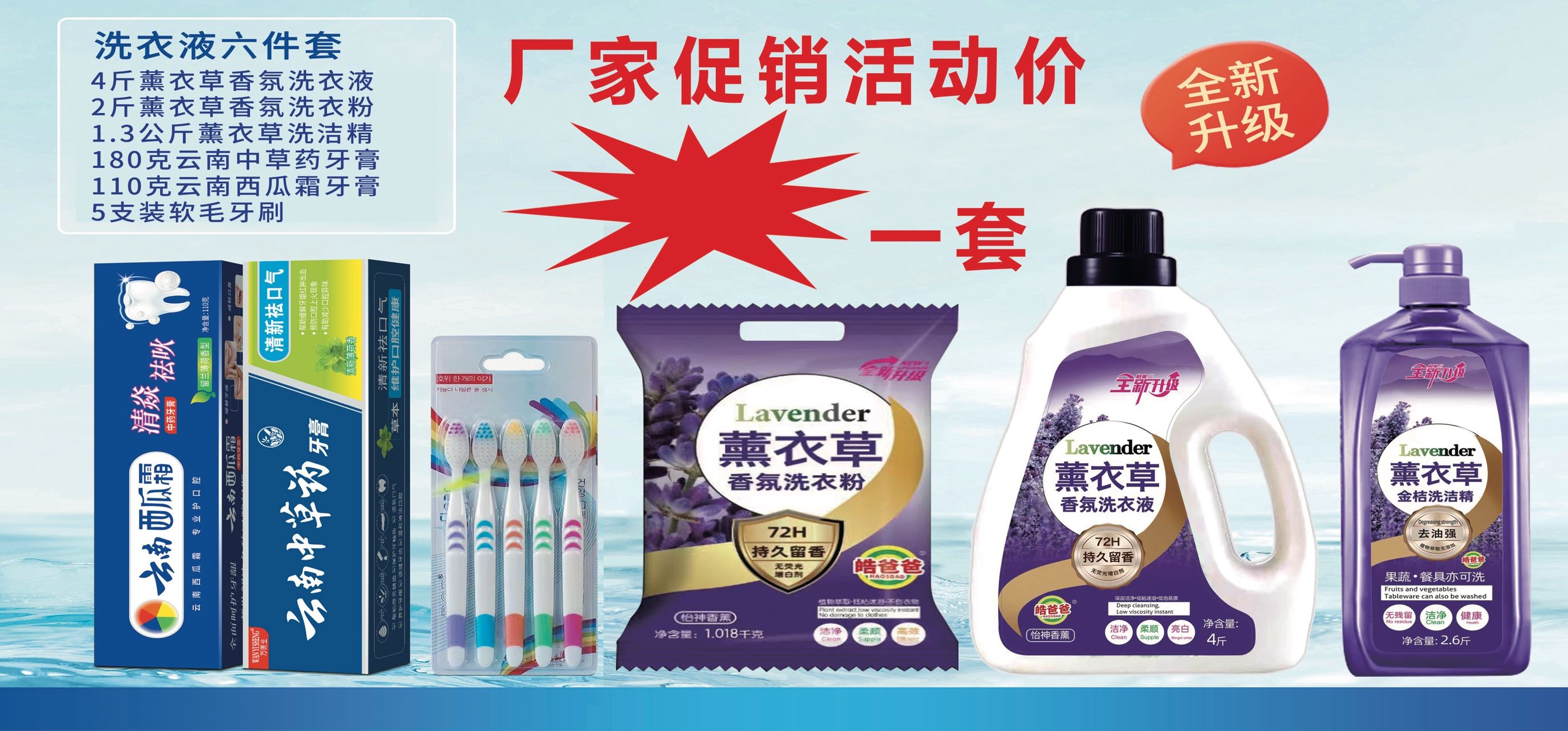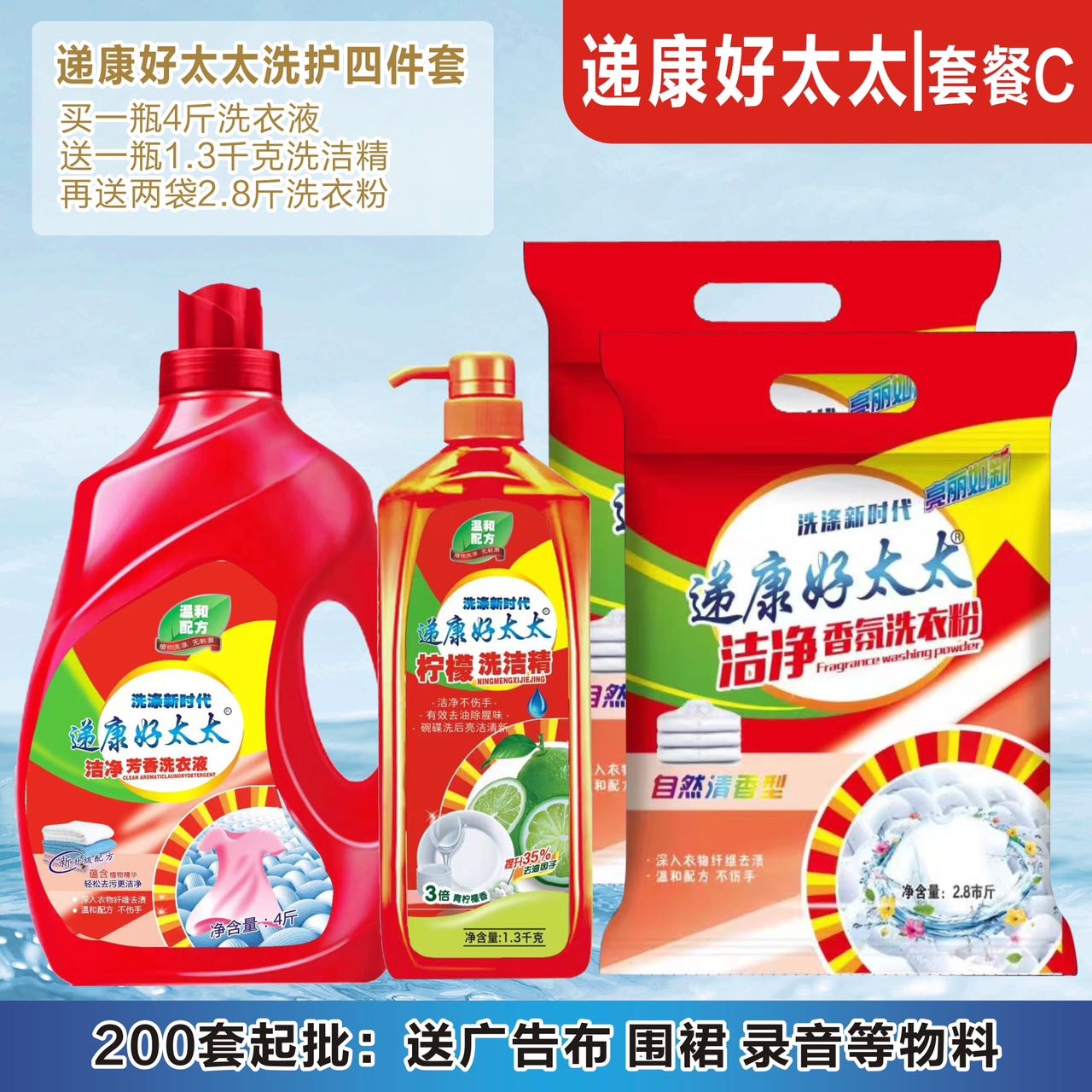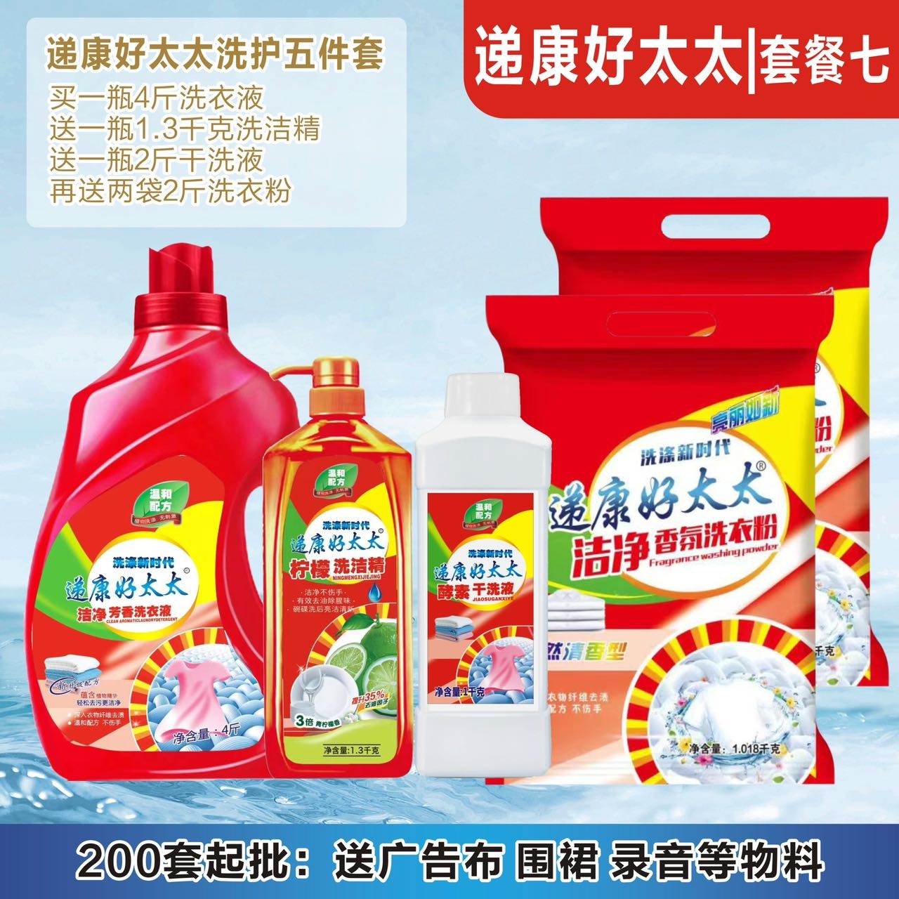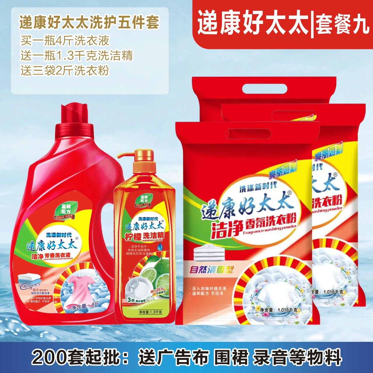 递康好太太日化五件套洗衣液洗衣粉盆4件套地摊纸巾牙膏货源工厂
