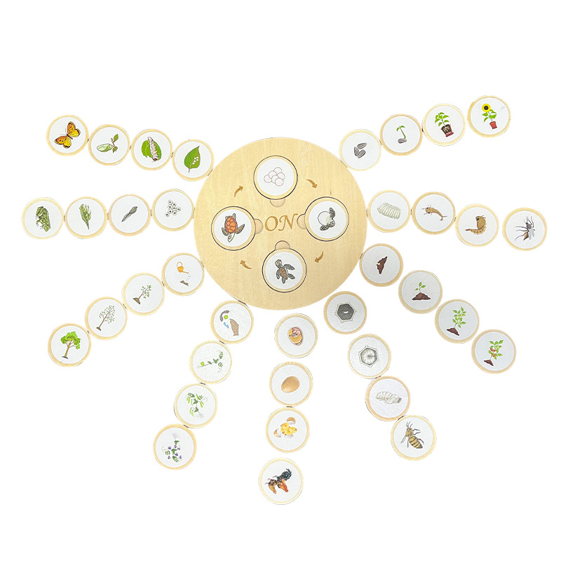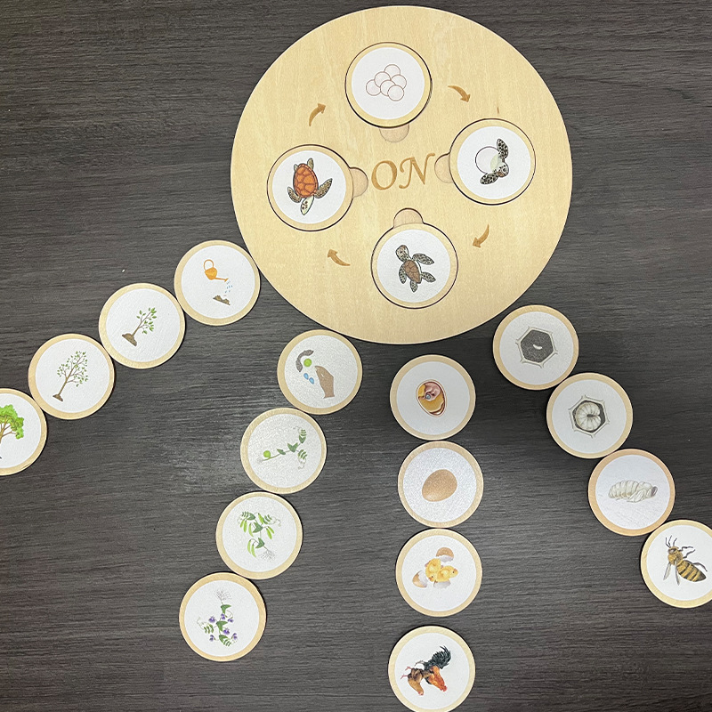 启蒙教具木质拼图物植物生命周期拼图循环游戏幼儿童早教推演板玩