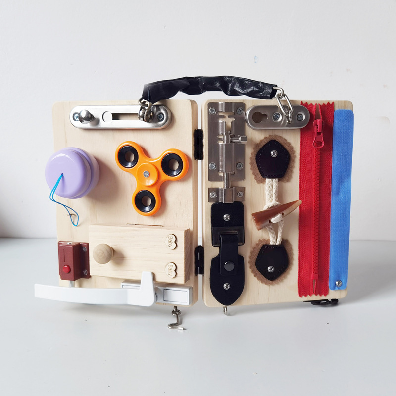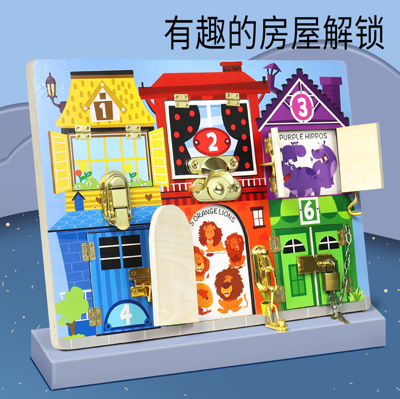 跨境忙碌板儿童早教益智蒙氏趣味忙碌块 忙碌箱3岁木制玩具屋批发