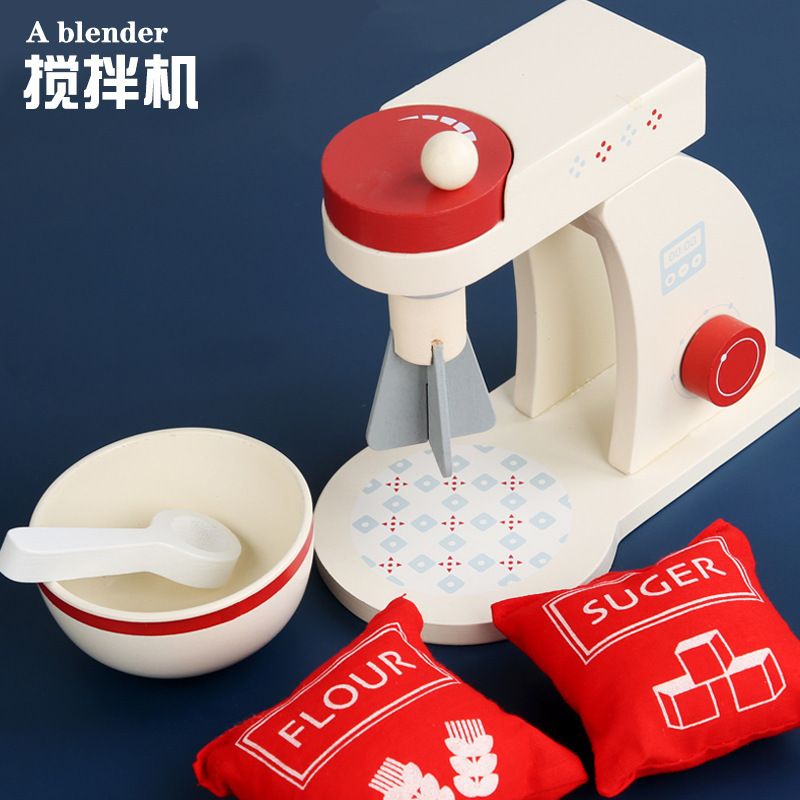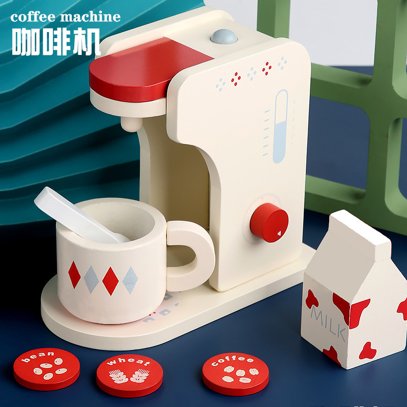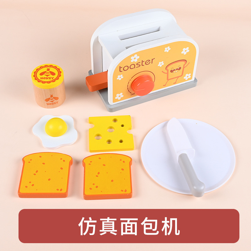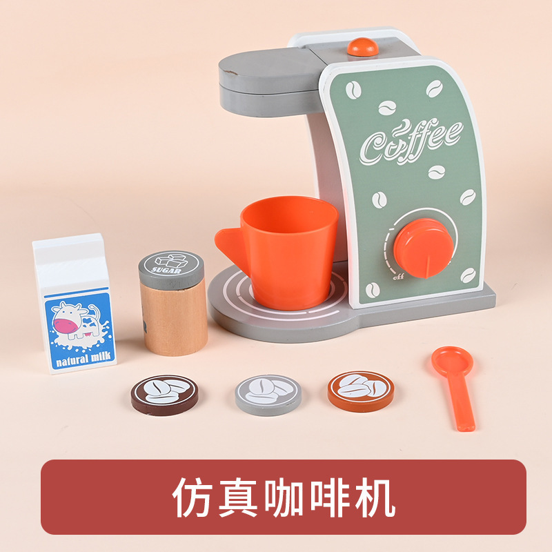 儿童仿真木质面包机咖啡机搅拌机组合男女孩厨房过家家小家电玩具