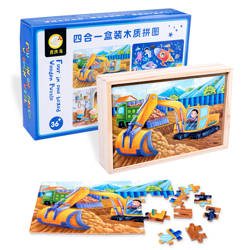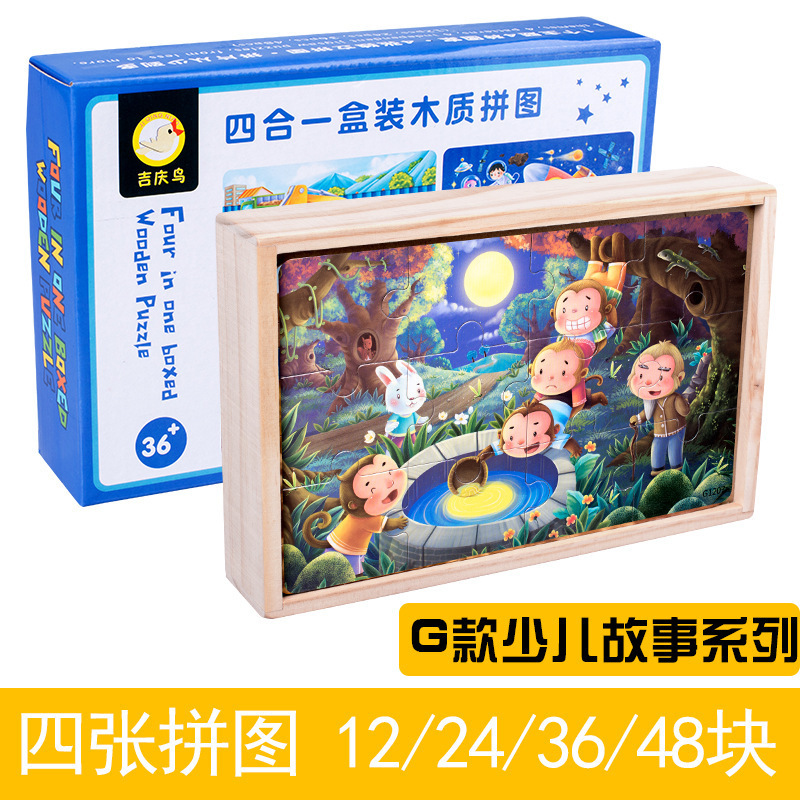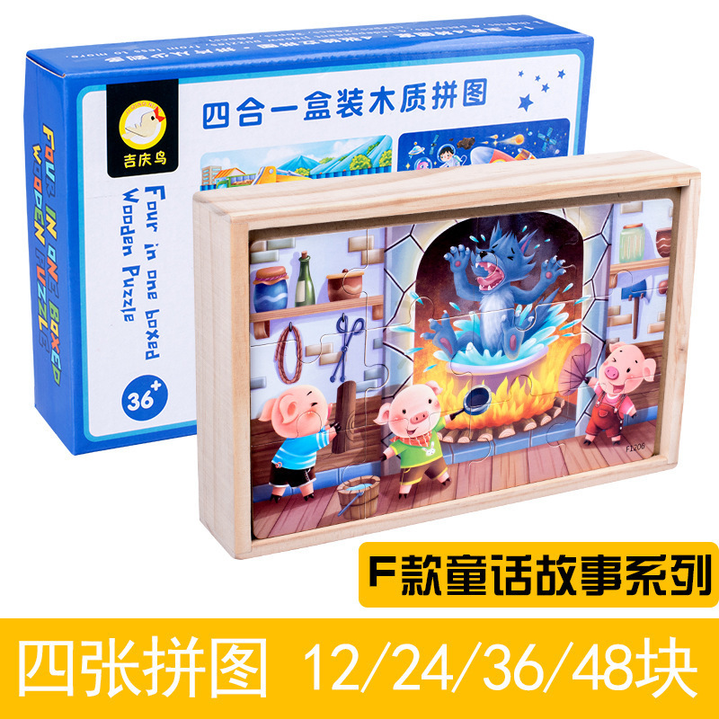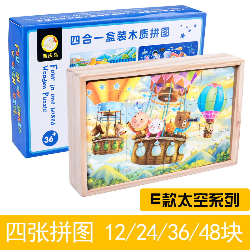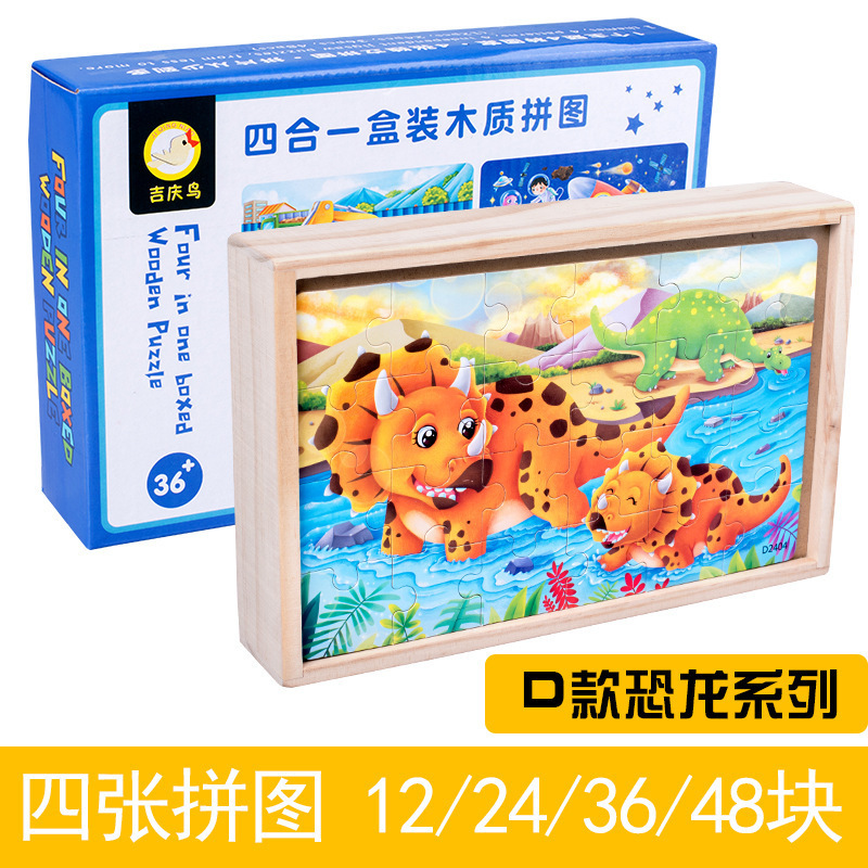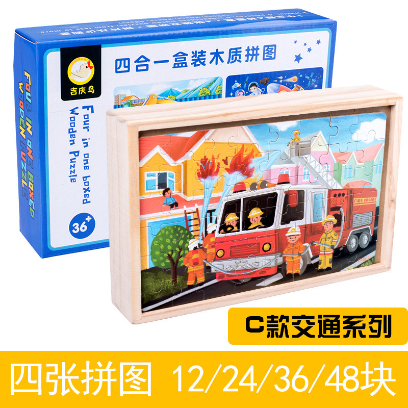 木质拼图玩具幼儿童四合一主题进阶智力大块拼图拼版益智早教玩具