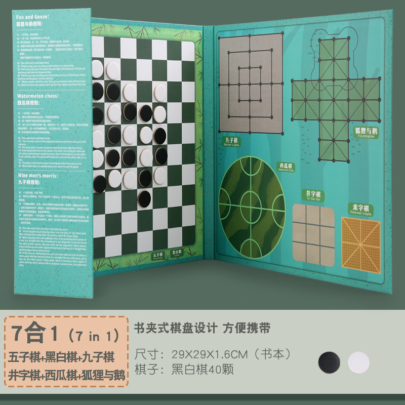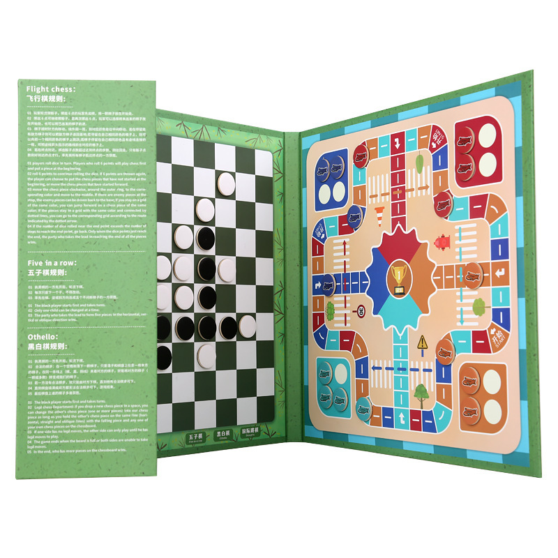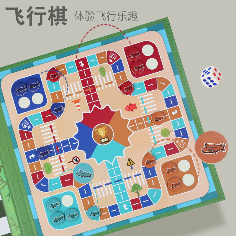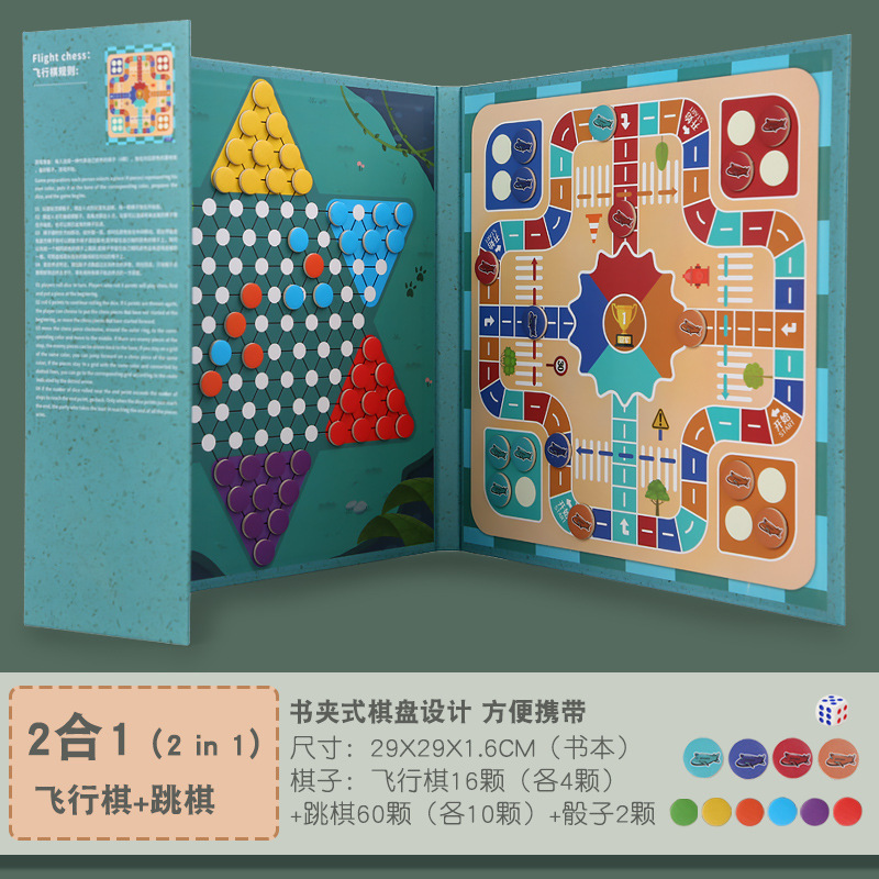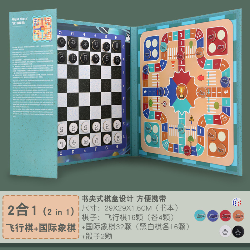 木质磁性书夹式多功能棋飞行棋五子棋儿童益智玩具亲子互动桌游