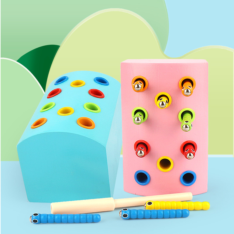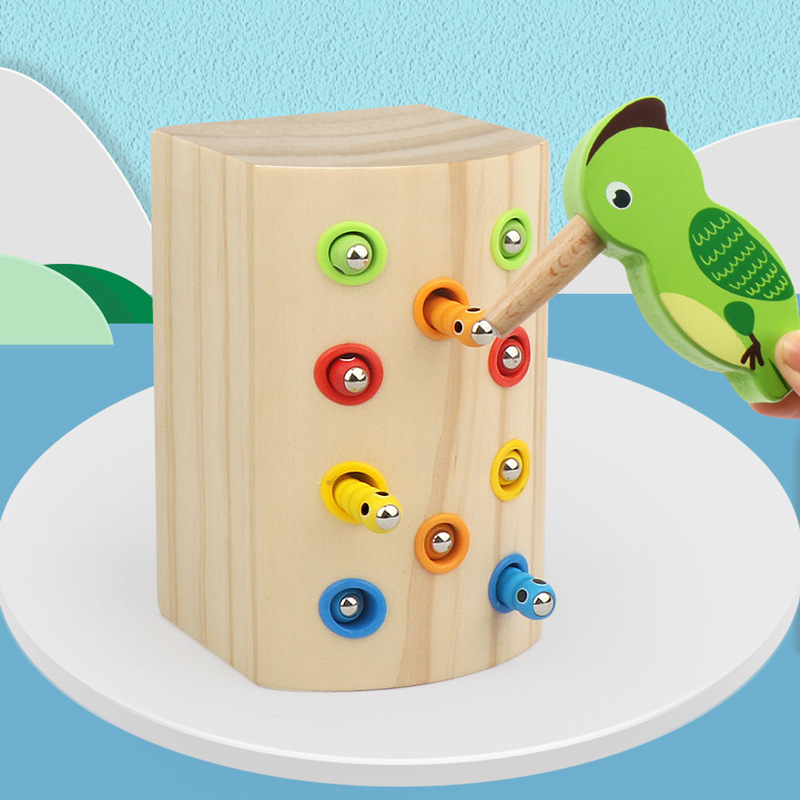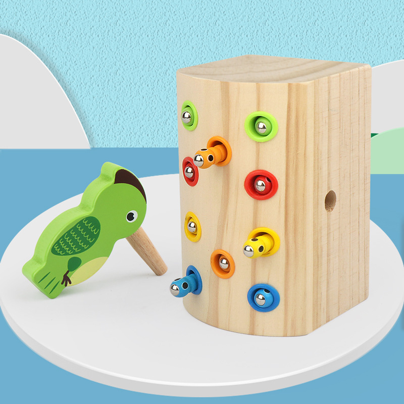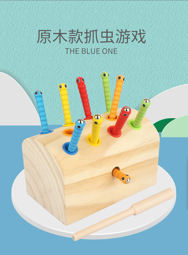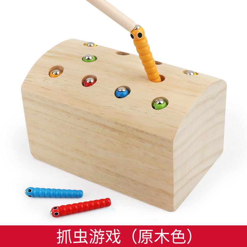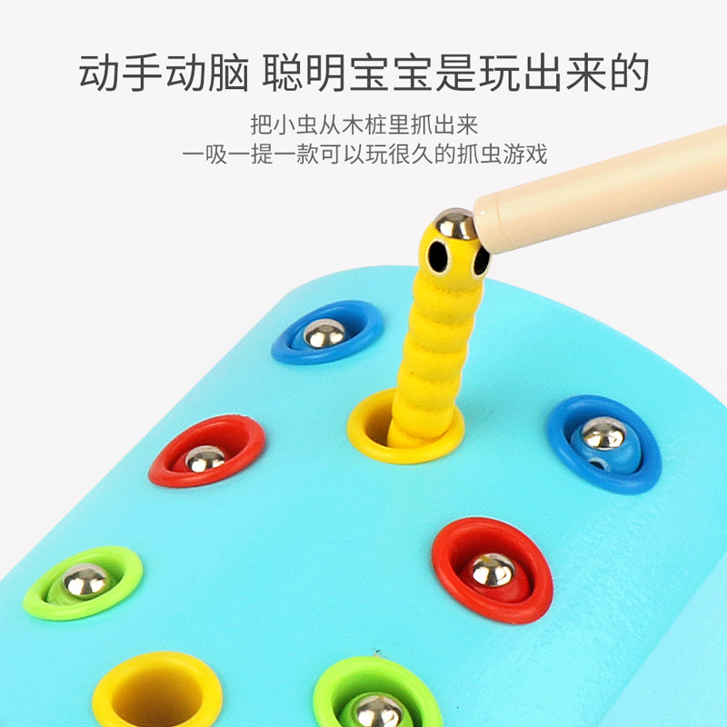 儿童啄木鸟捉抓毛毛虫磁性幼儿园钓鱼玩具宝宝蒙氏早教益智1-3岁