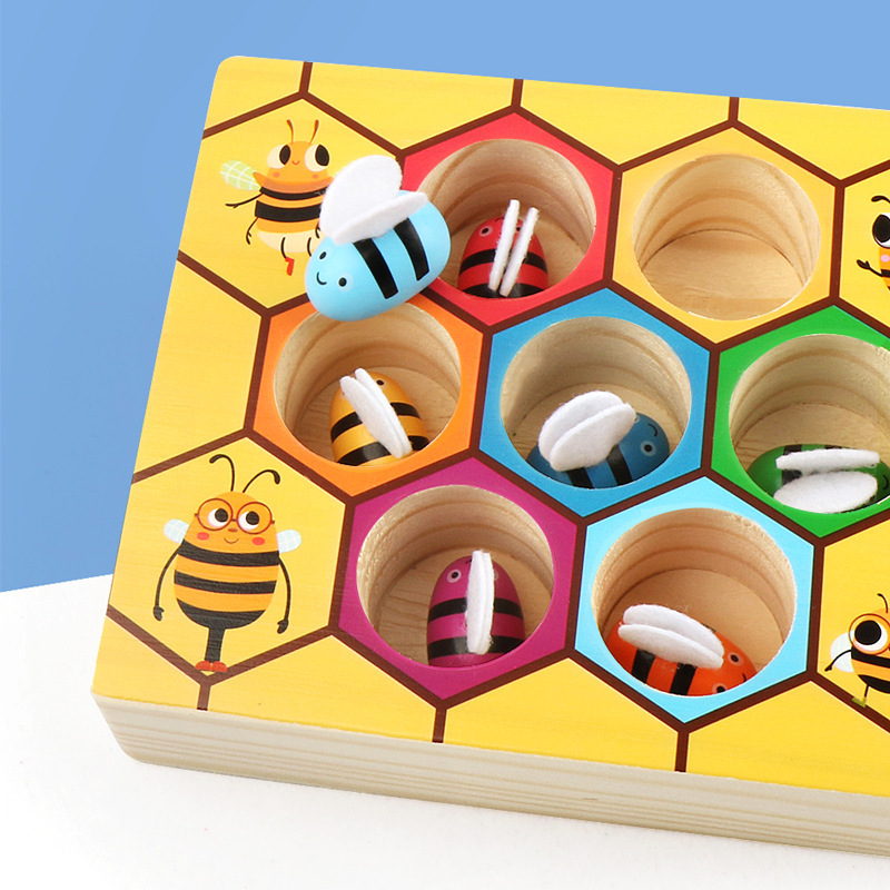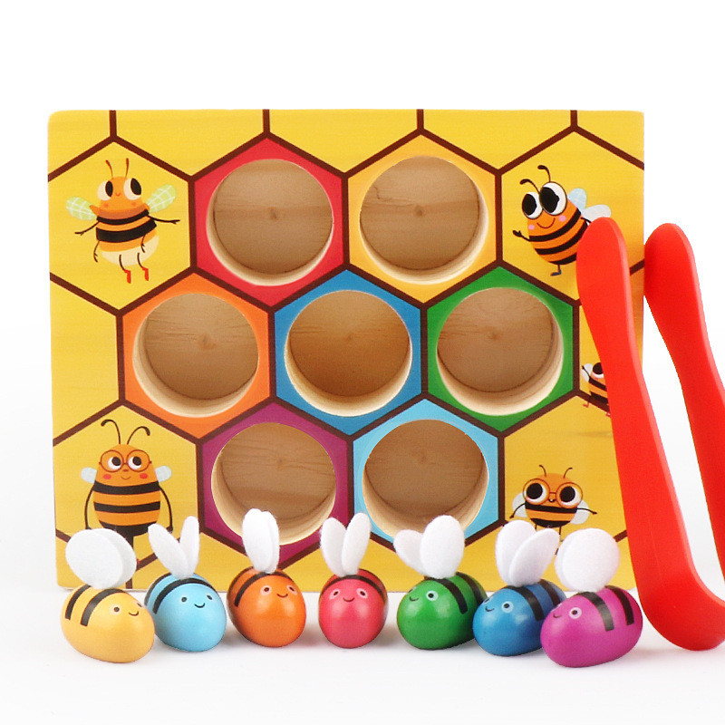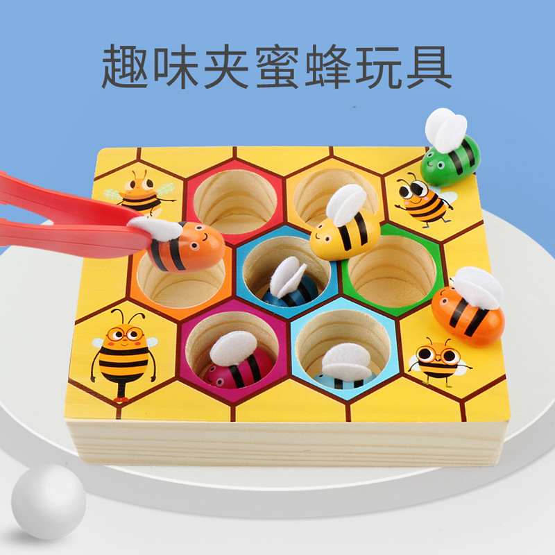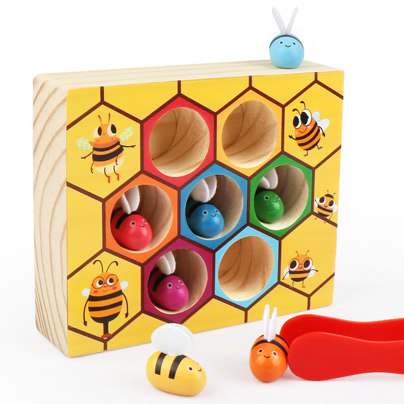 木制儿童蒙氏教育夹夹乐蜂箱游戏早教益智颜色认知夹小蜜蜂玩具