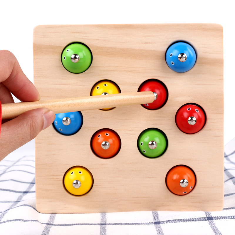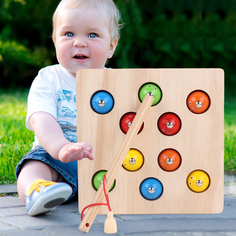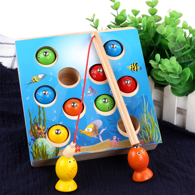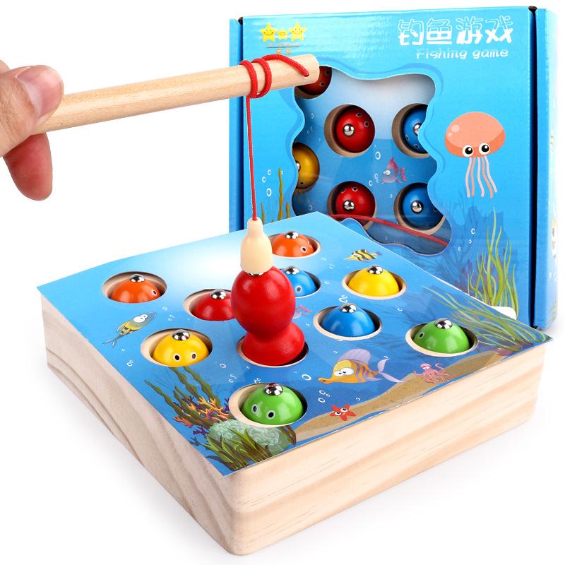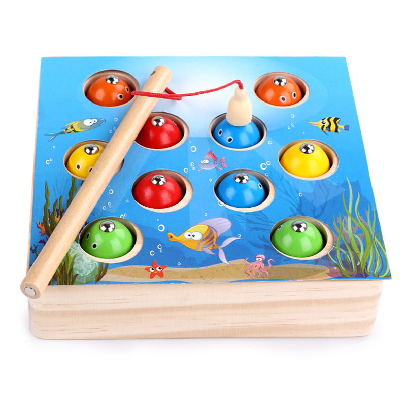 木质玩具磁性钓鱼游戏儿童男孩女孩宝宝颜色认知早教益智3岁玩具