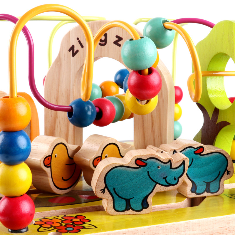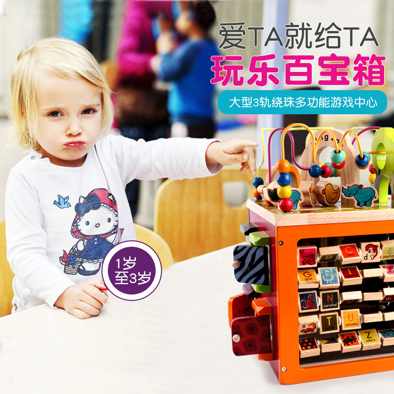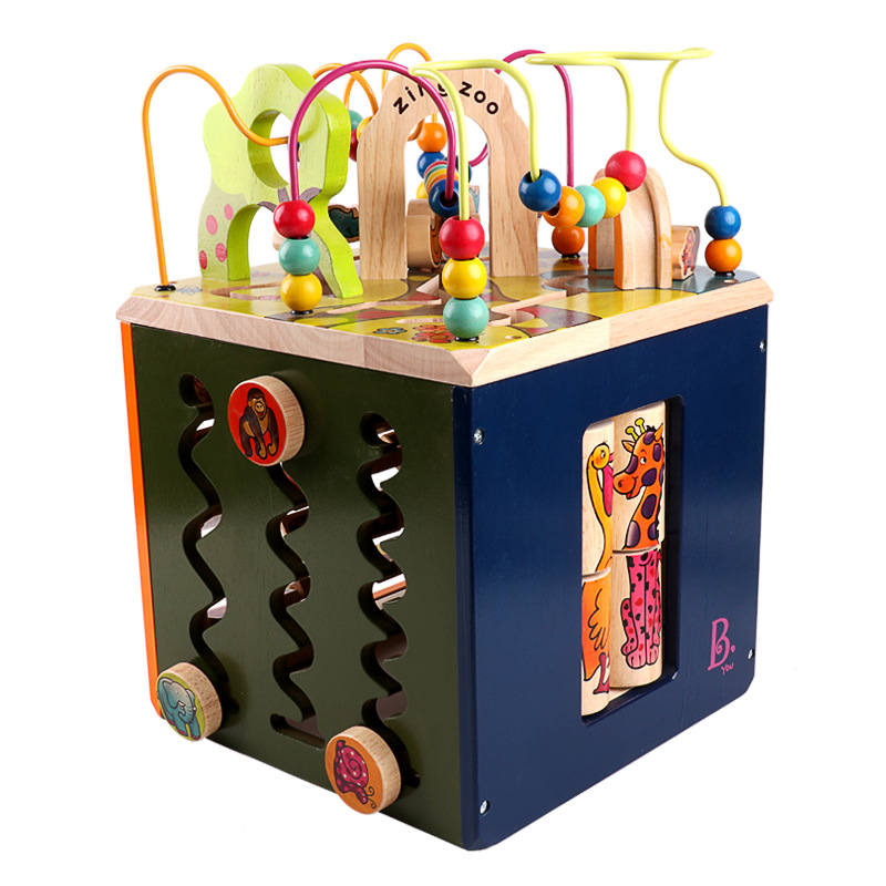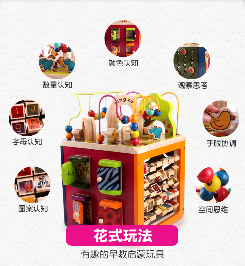 btoys木质幼儿益智早教多功能四面动物园绕珠百宝箱儿童益智玩具