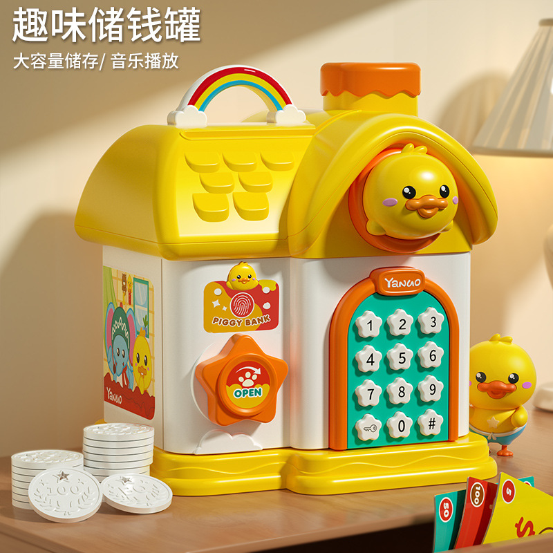 卡通儿童黄小鸭存钱罐自动卷钱atm机大容量仿真智能指纹密码钱罐