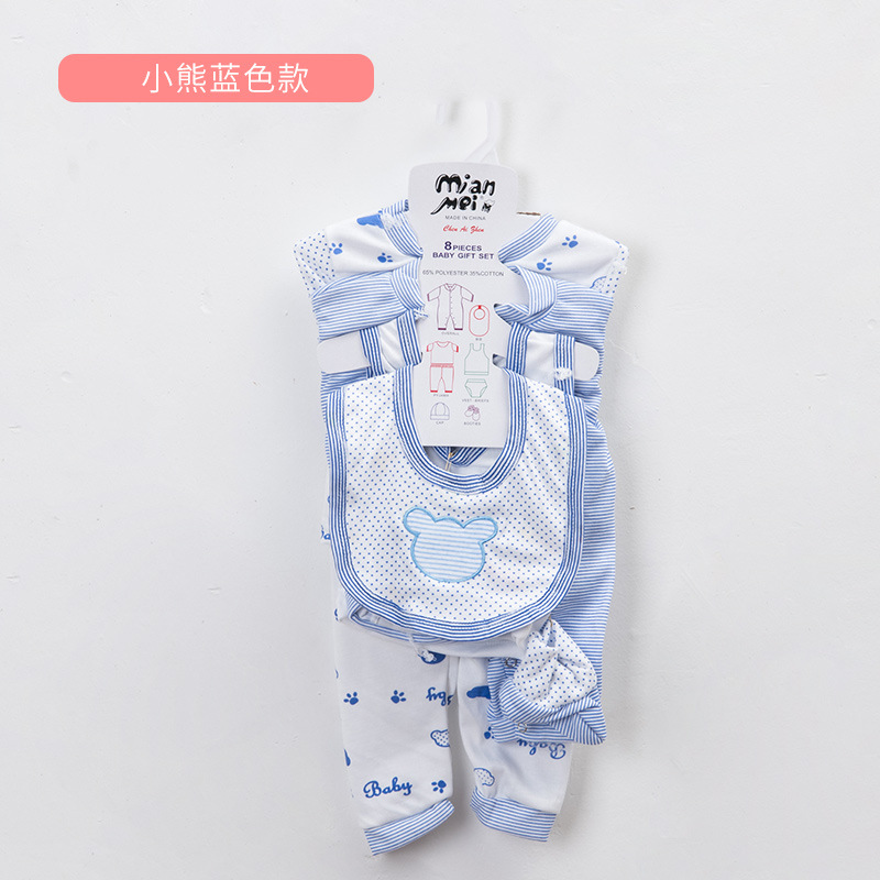 新生儿连体衣八件套纯色爬爬服0-1岁外贸宝宝套装卡通婴儿服批发
