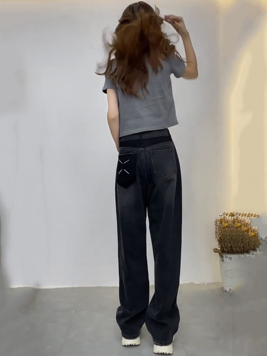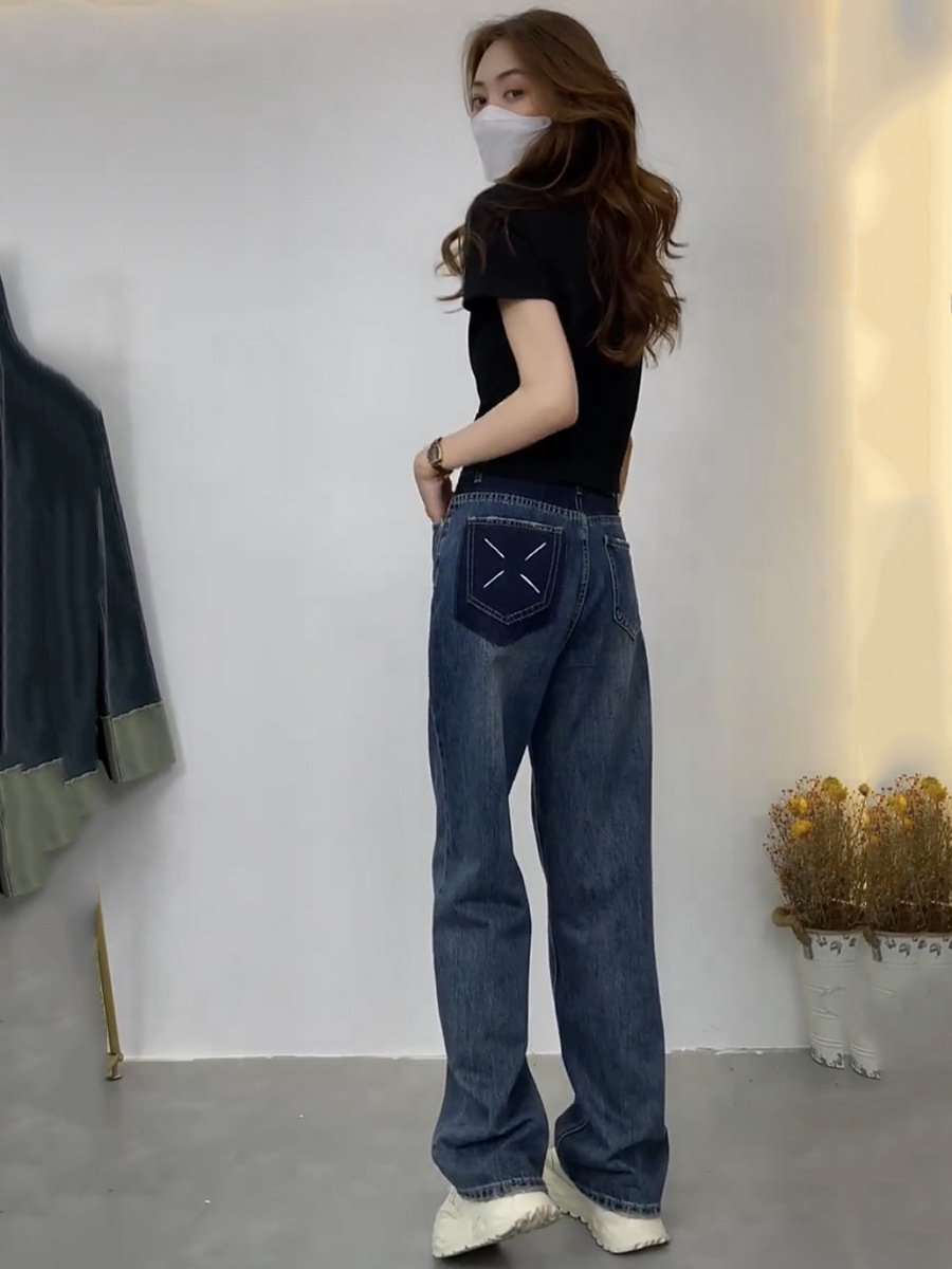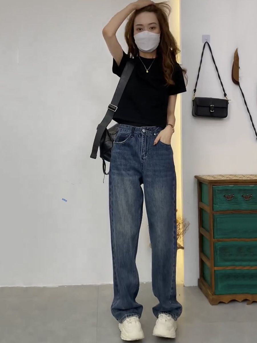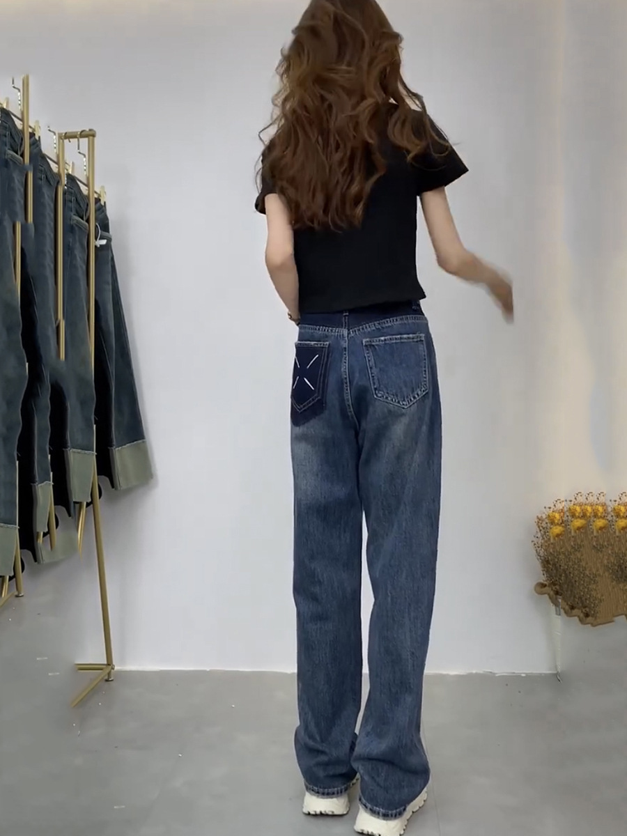 欧美春秋新款阔腿牛仔裤女宽松显瘦直筒高腰梨型身材裤子潮