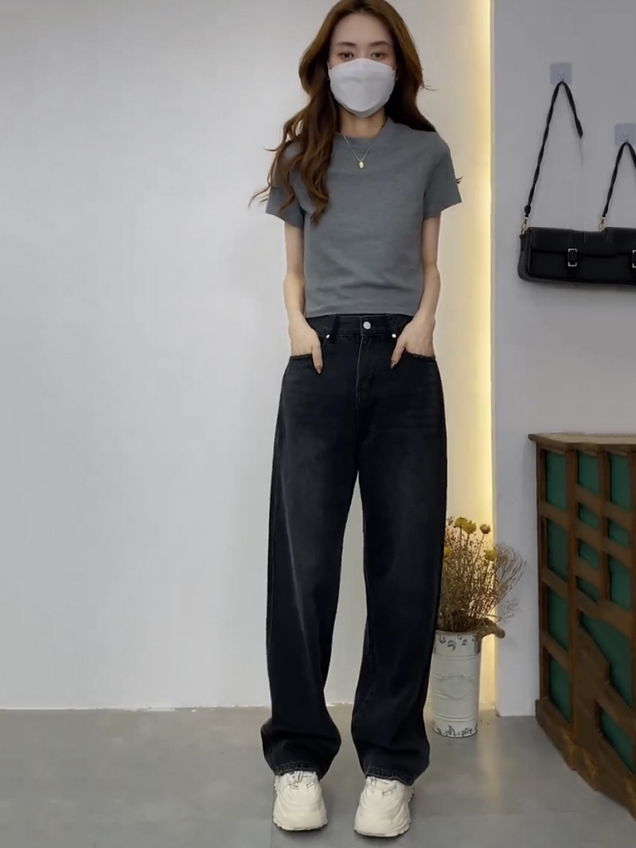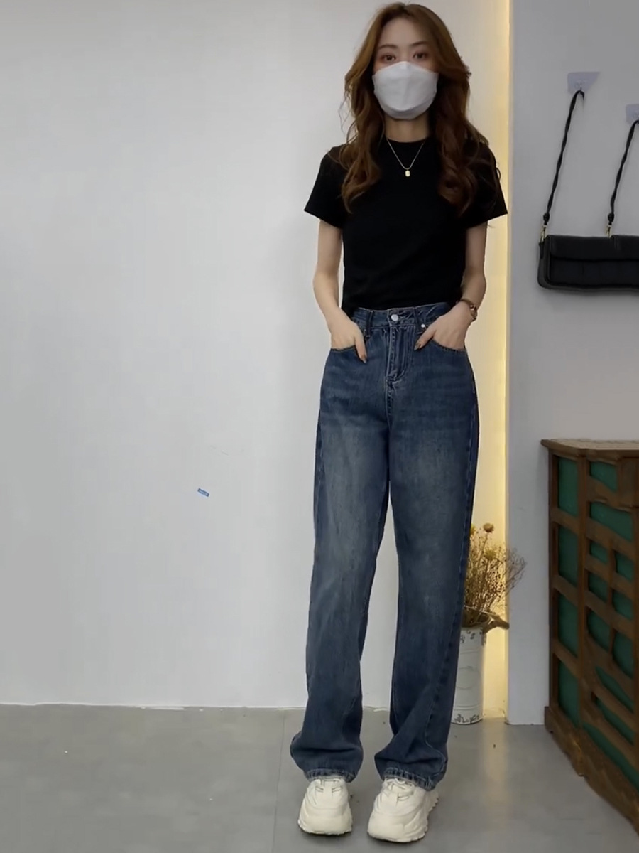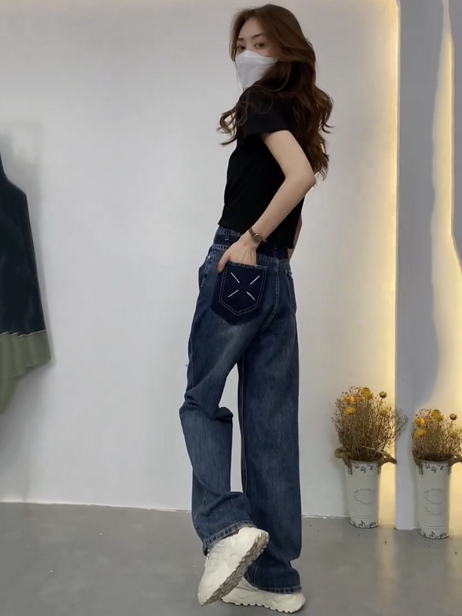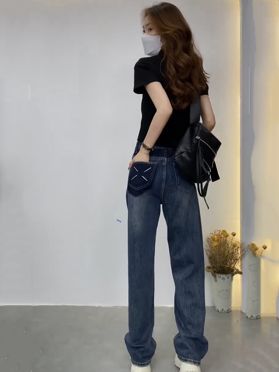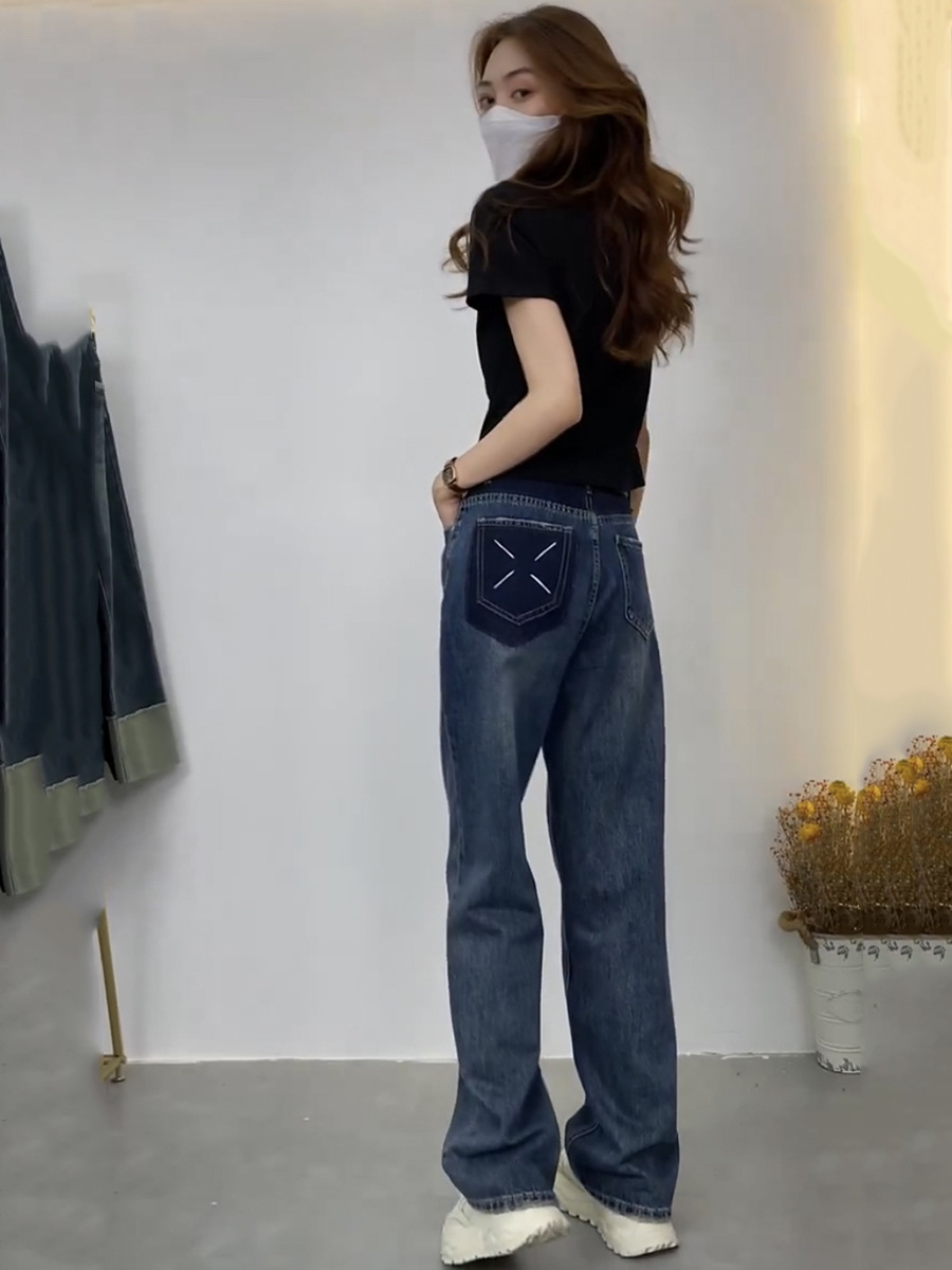 欧美春秋新款阔腿牛仔裤女宽松显瘦直筒高腰梨型身材裤子潮