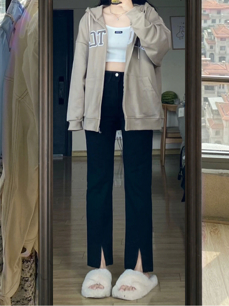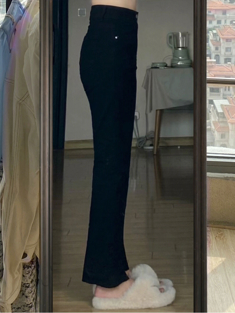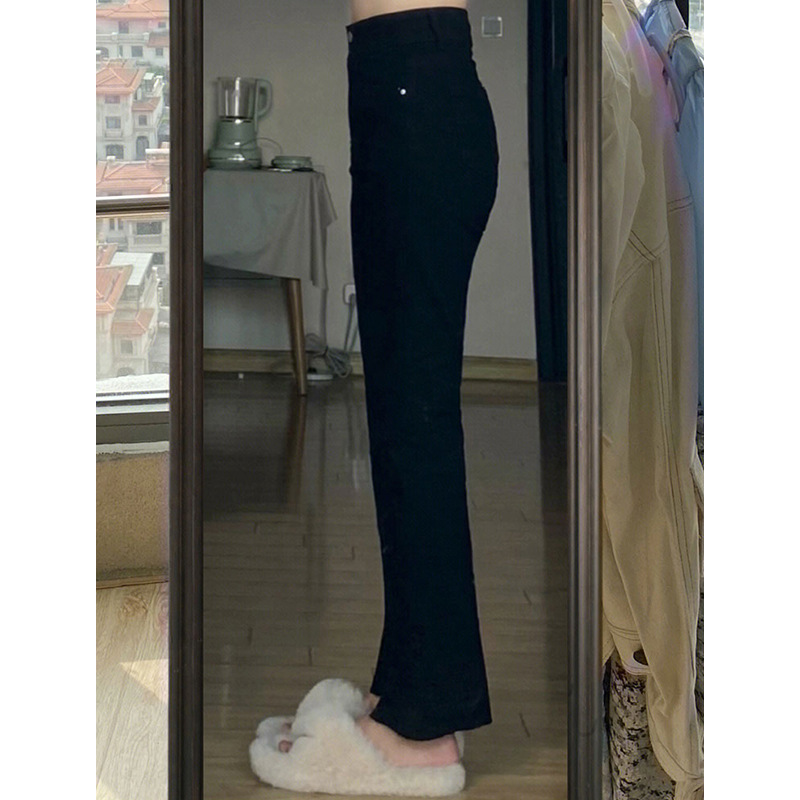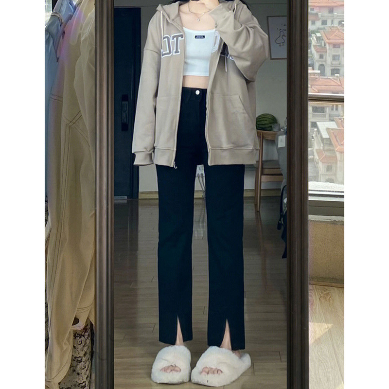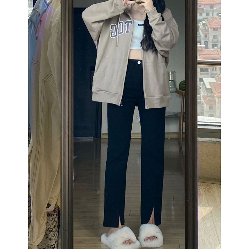黑色开叉阔腿裤高腰牛仔裤女秋冬新款韩版显瘦百搭休闲直筒裤子潮