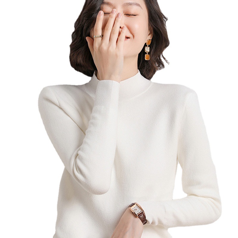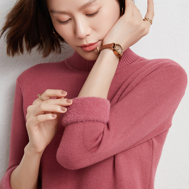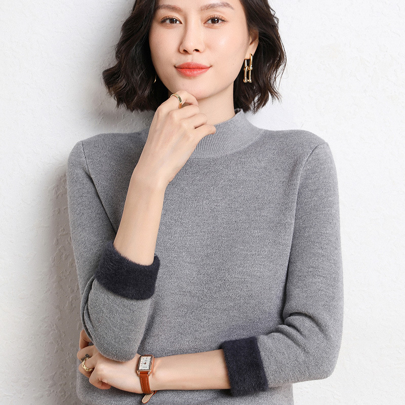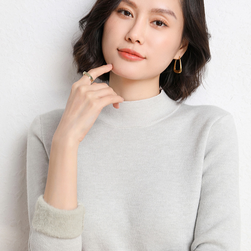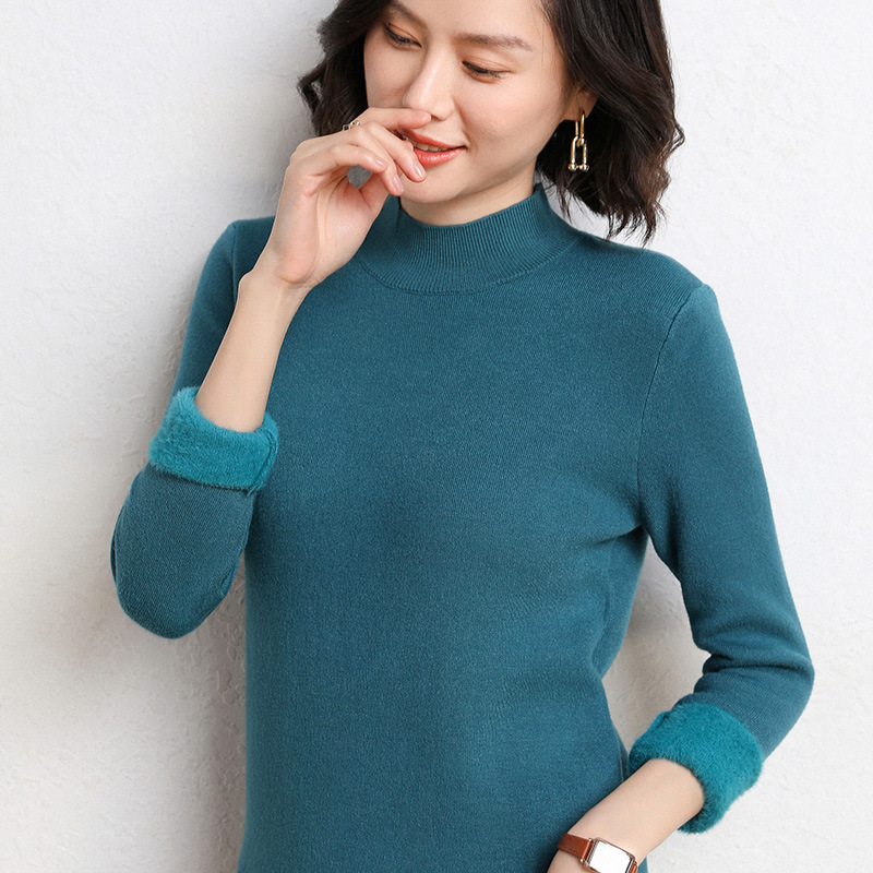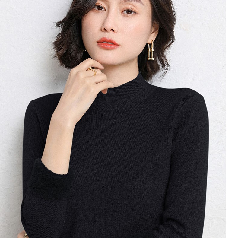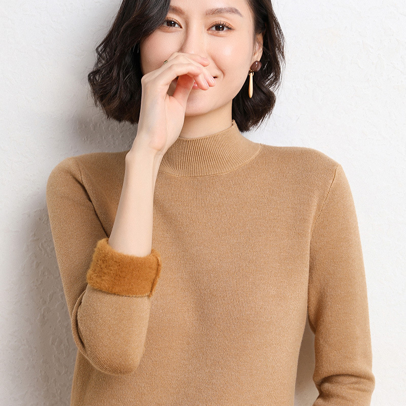 加厚一体绒毛衣女2022秋冬半高领加绒保暖打底衫纯色内搭针织衫女