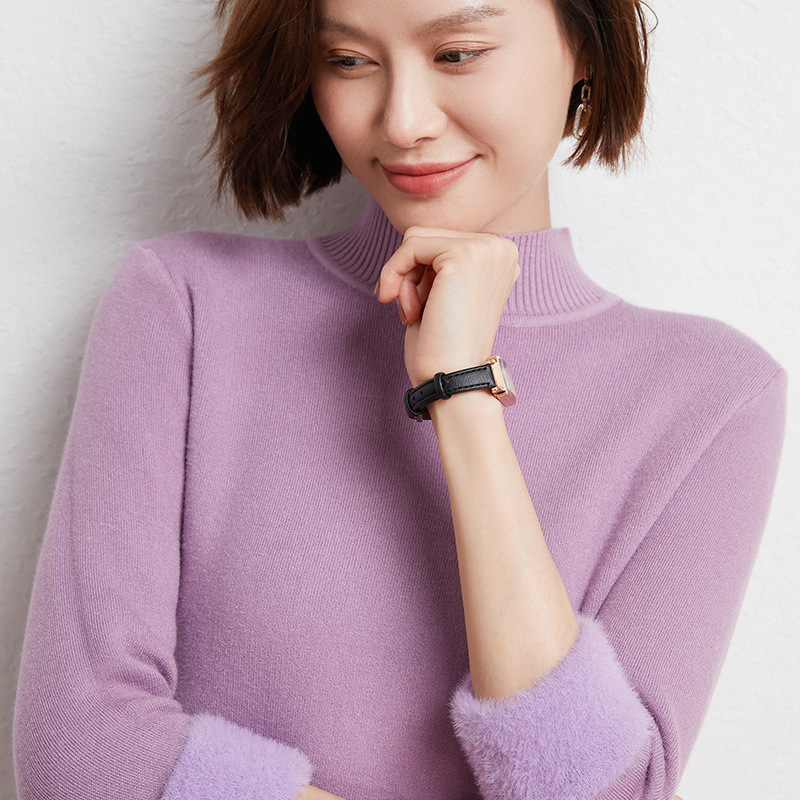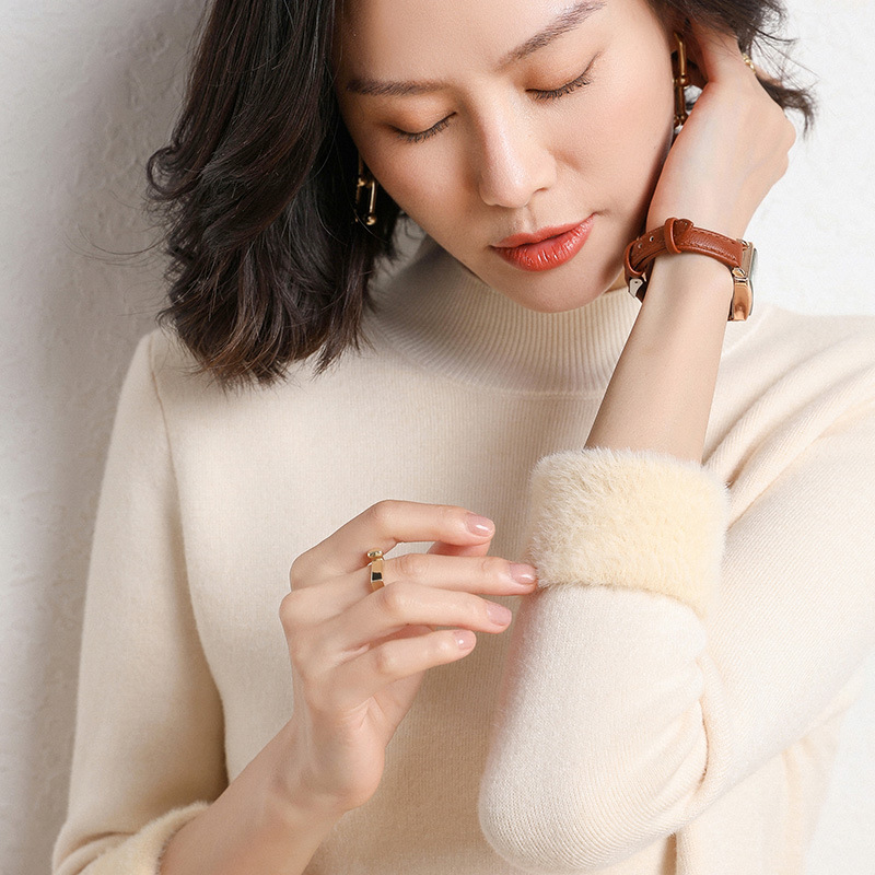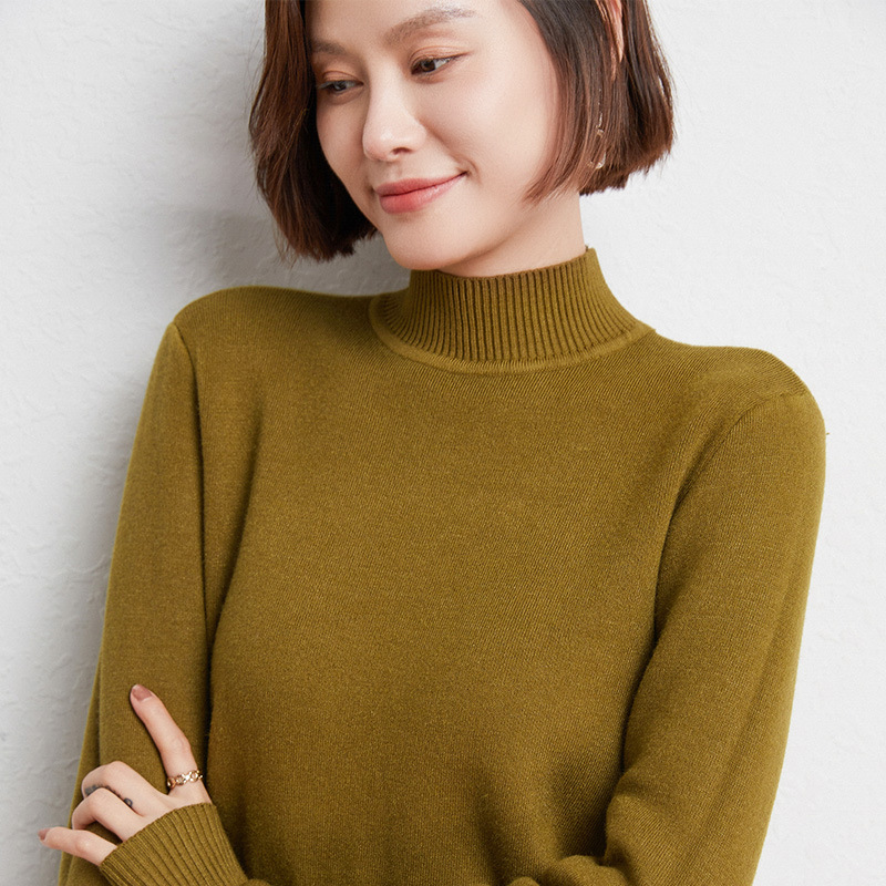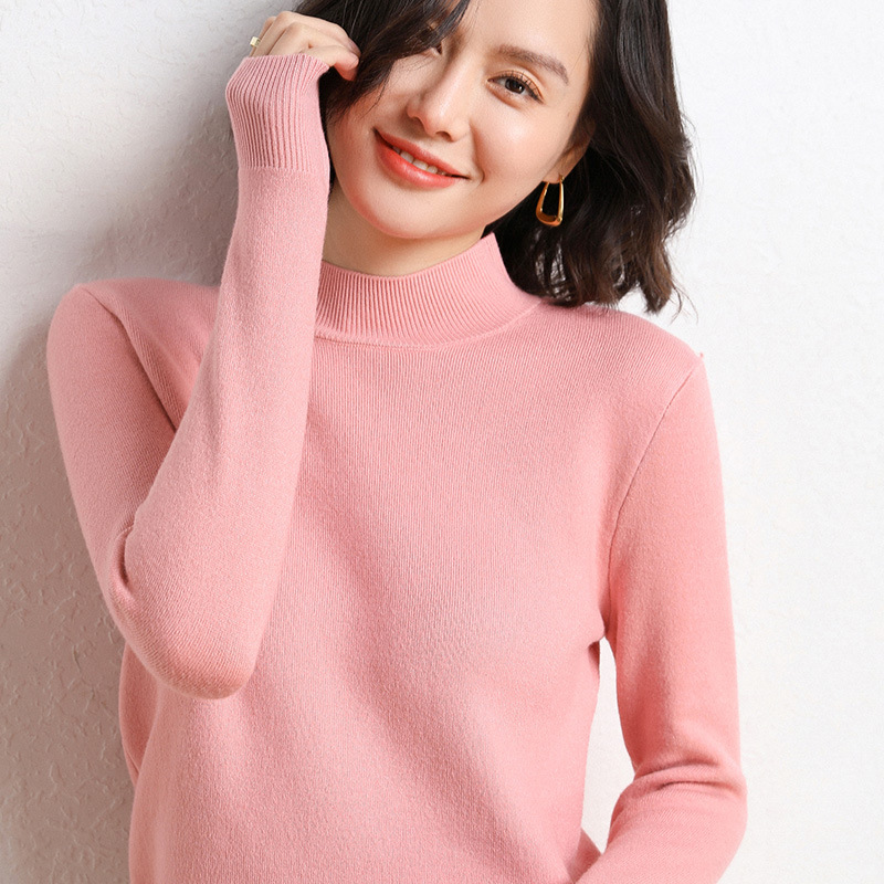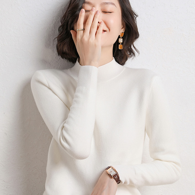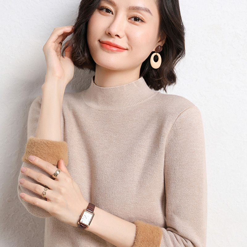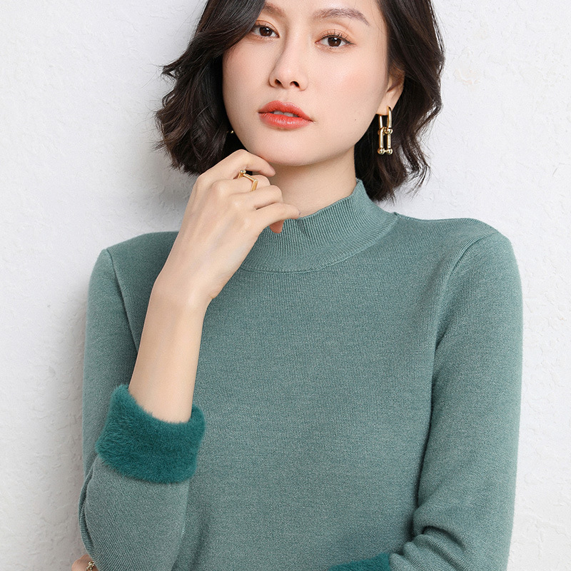 加厚一体绒毛衣女2022秋冬半高领加绒保暖打底衫纯色内搭针织衫女