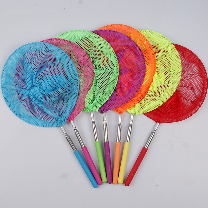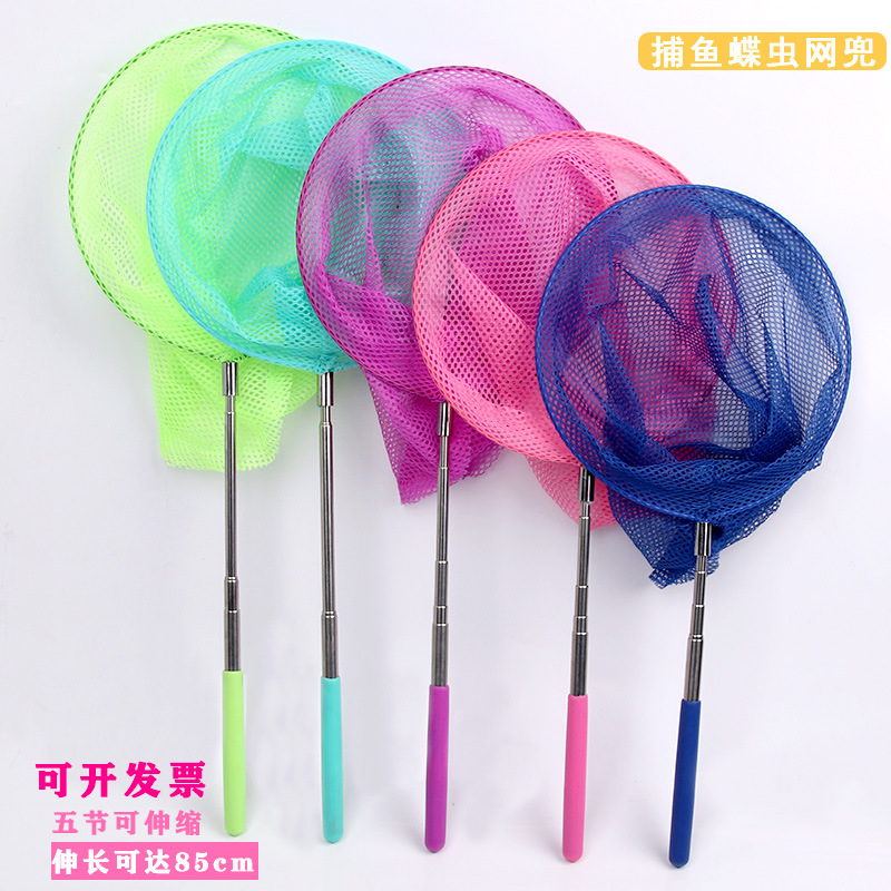 捞鱼网沙滩戏水玩具不锈钢伸缩杆五节蝴蝶网捕虫网夏季儿童抄网兜