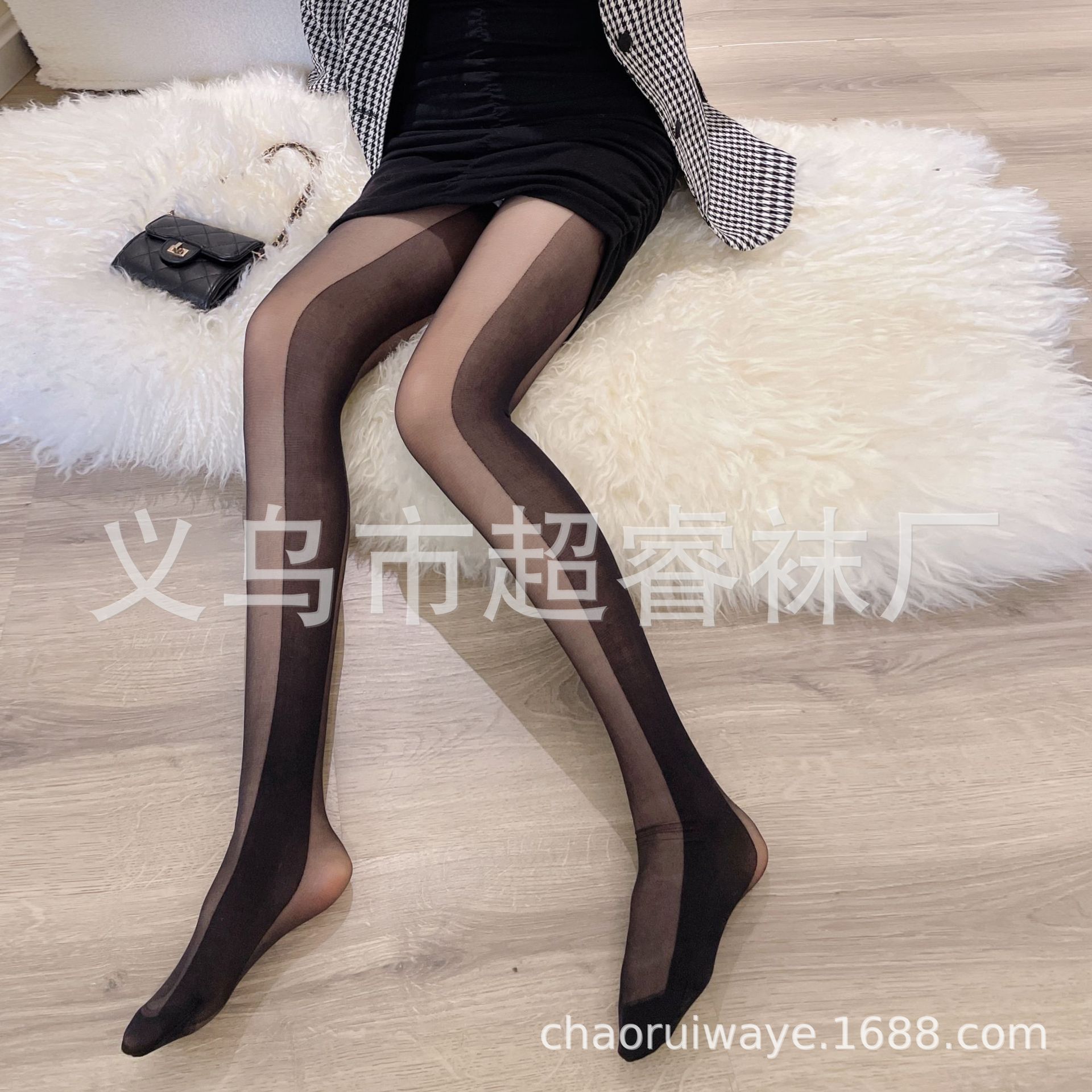 日韩系拼接丝袜张惠妹同款四季侧边竖条纹阴影显瘦打底丝袜连裤袜