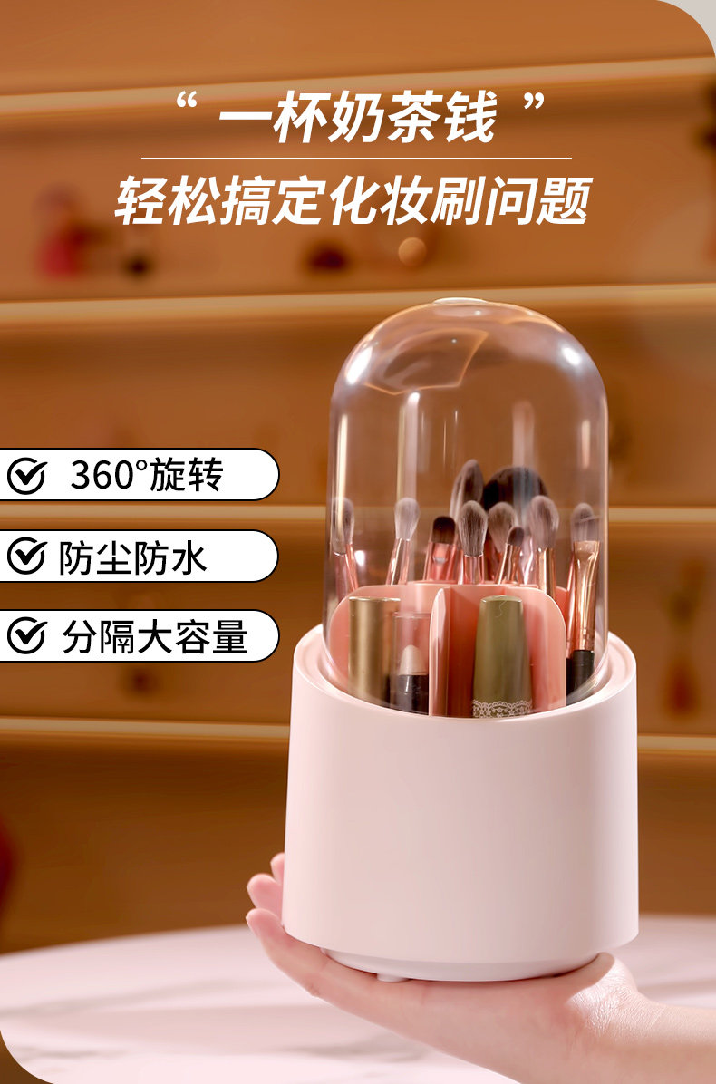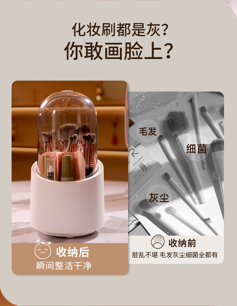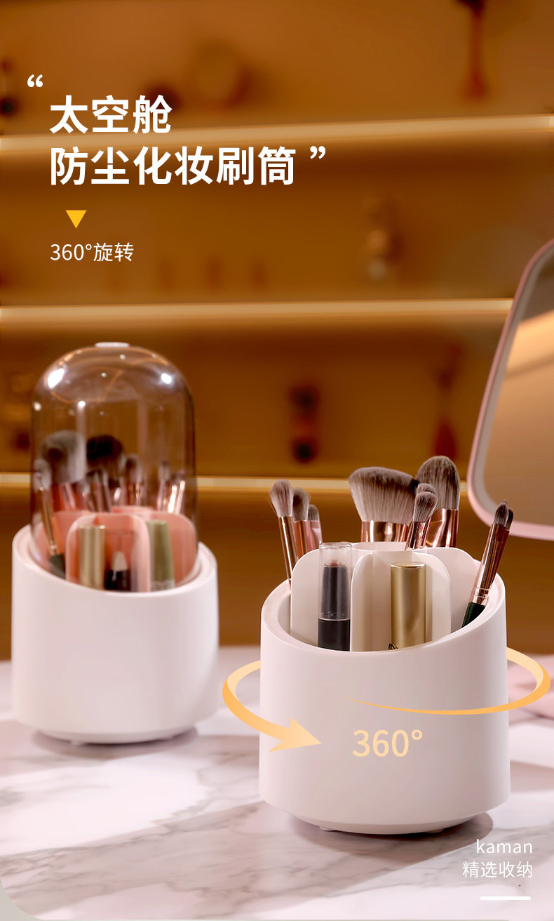 化妆刷收纳筒桌面眉笔眼影刷子桶旋转化妆品口红笔筒梳妆台收纳盒