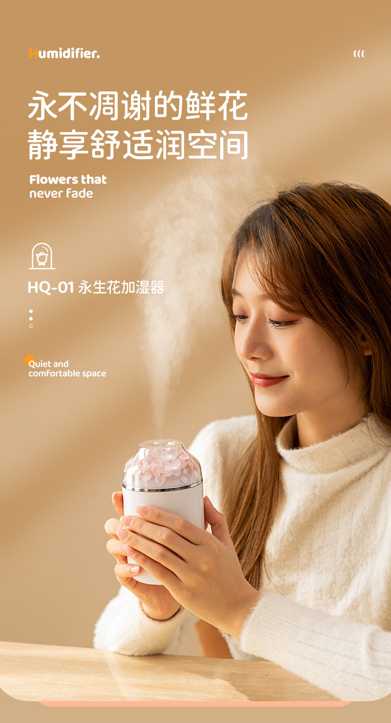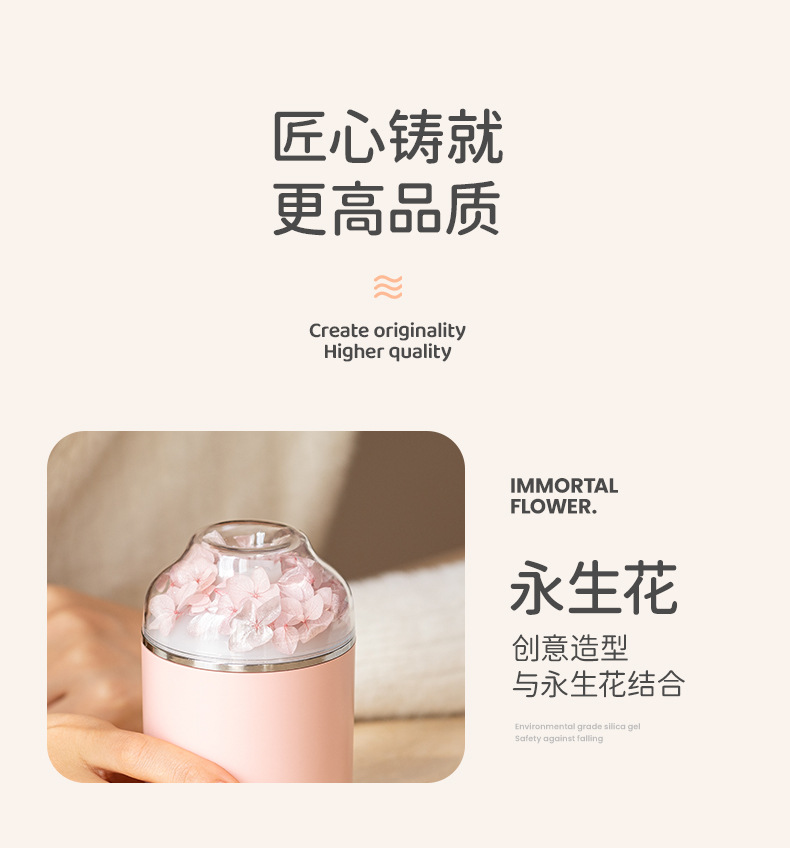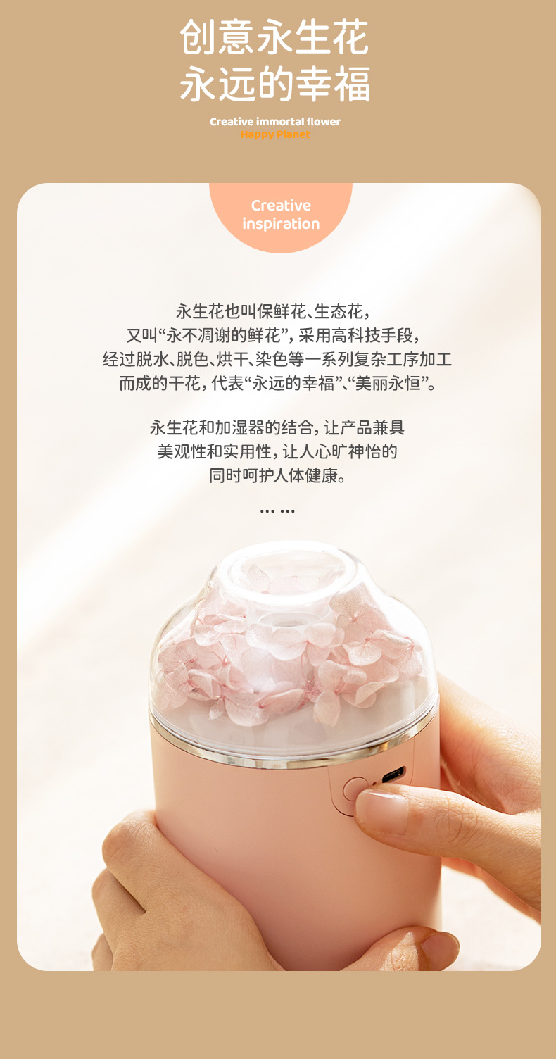 创意炫彩 永生花加湿器家用便携静音香薰机加湿器 情人节礼品