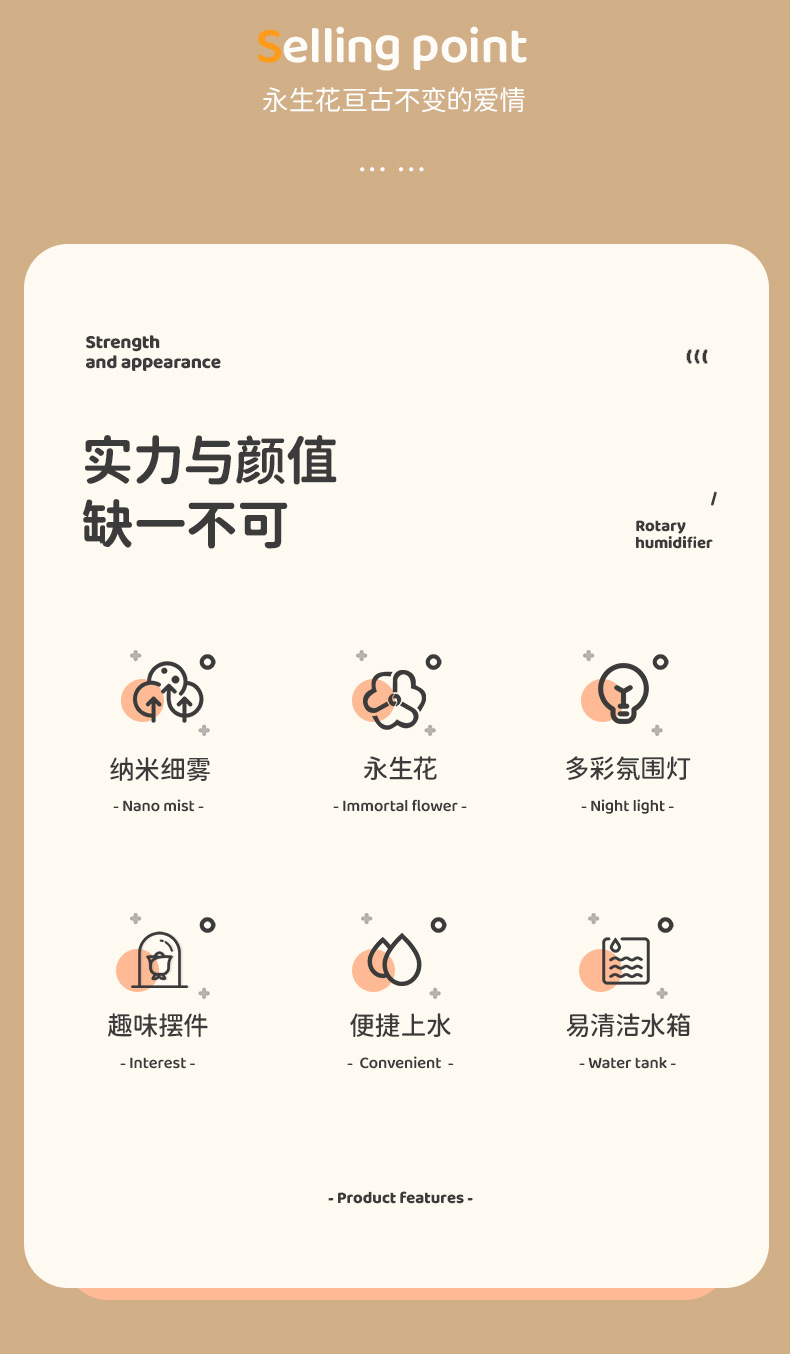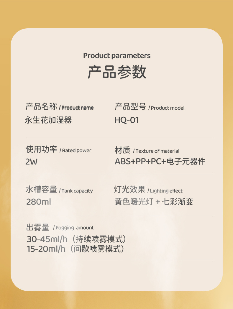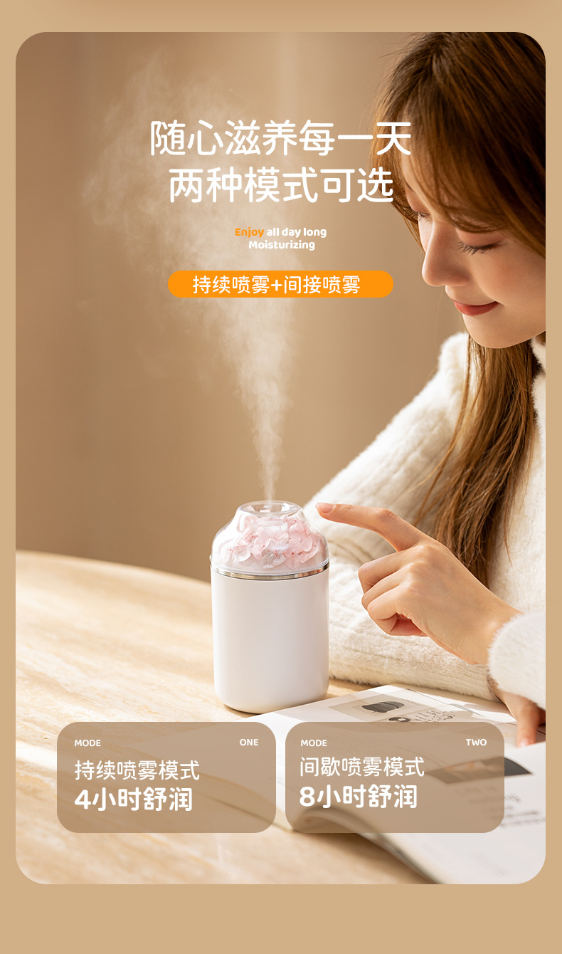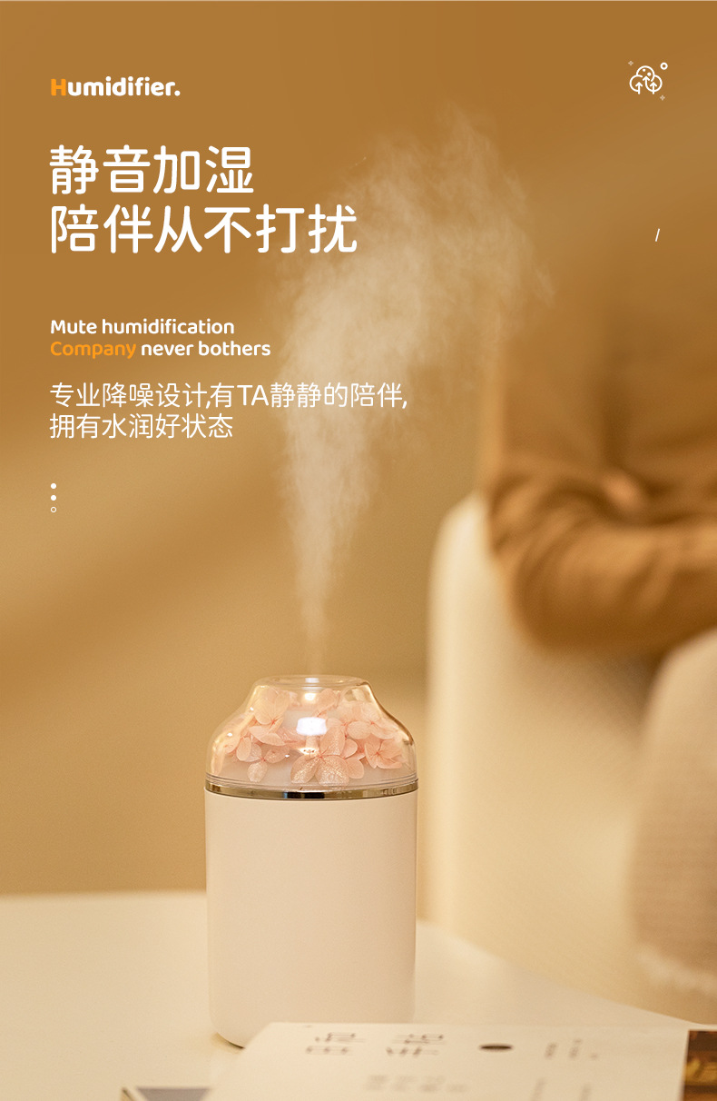 创意炫彩 永生花加湿器家用便携静音香薰机加湿器 情人节礼品