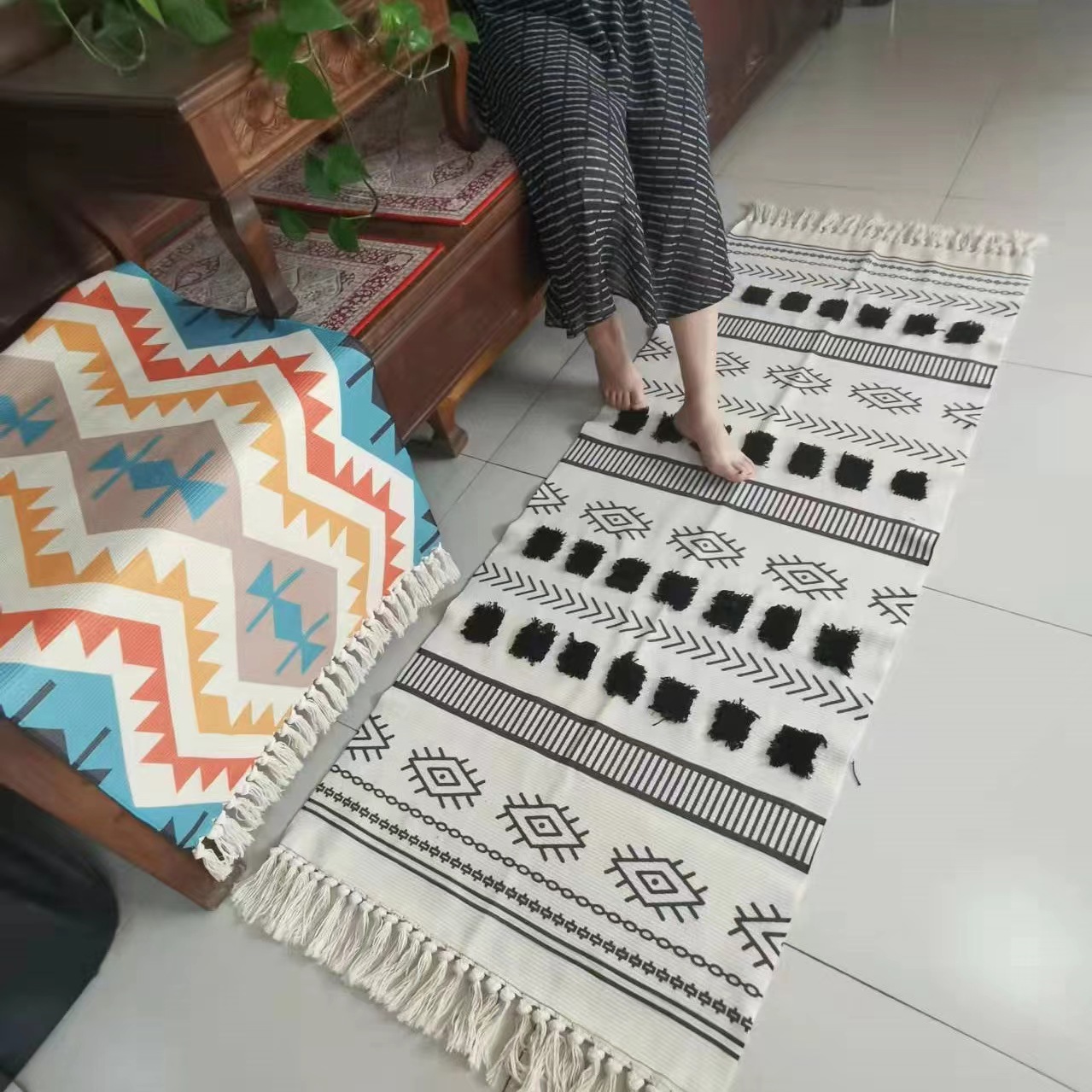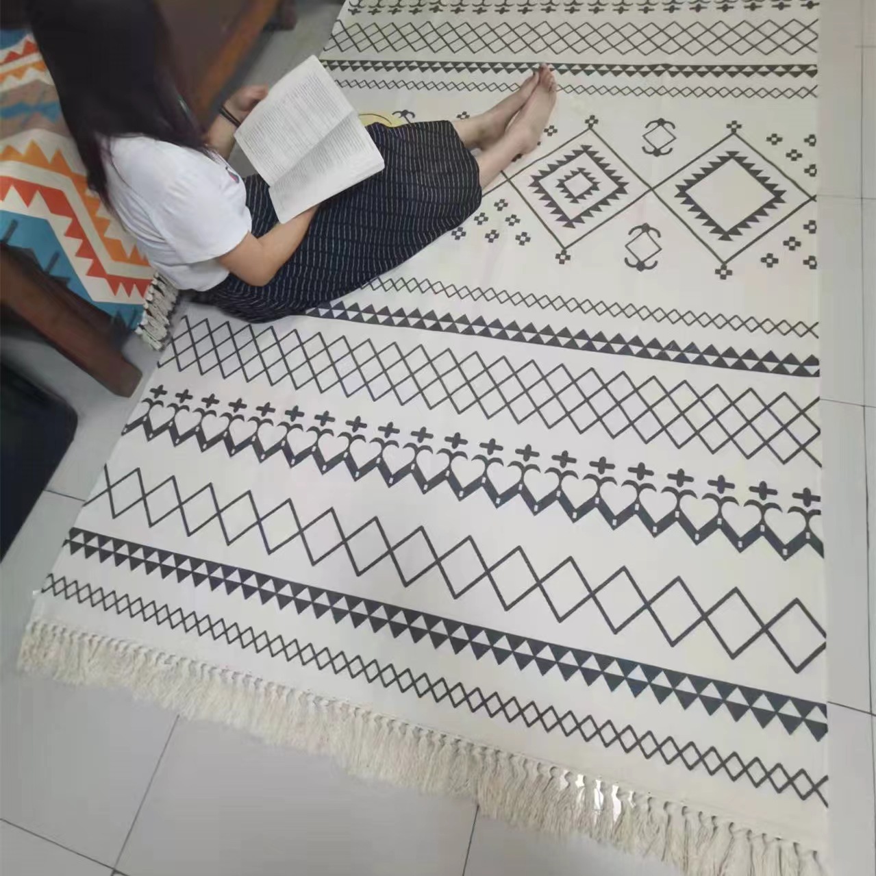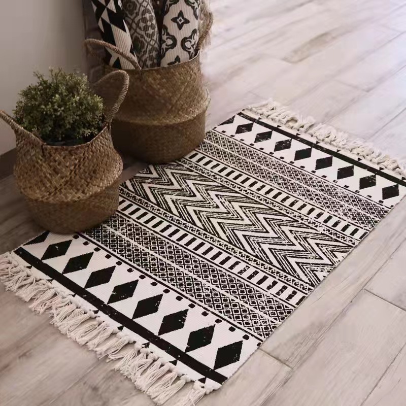 波西米亚黑白装饰个性壁毯 书房办公室民族风挂毯 客厅布艺地垫