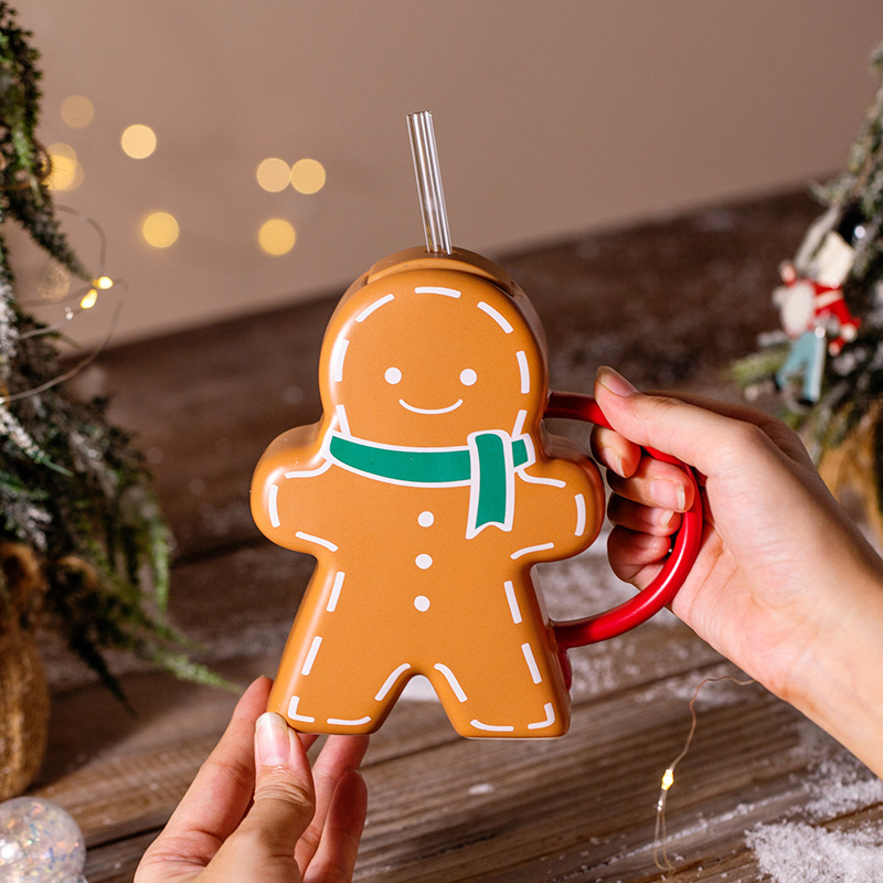 姜饼人圣诞马克杯高颜值圣诞礼品外贸圣诞陶瓷杯可爱水杯创意杯子