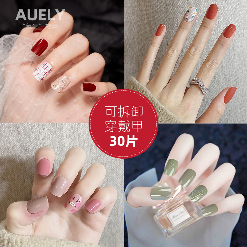 AUELY新款奥莉外贸专供假指甲成品指甲贴片果冻胶软甲30片批发
