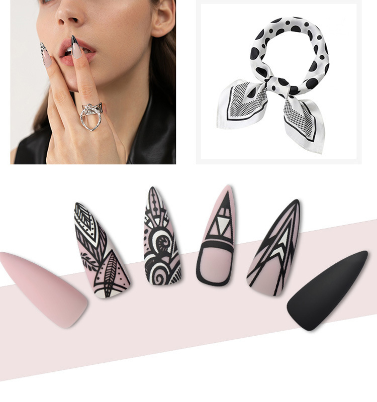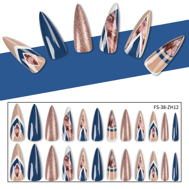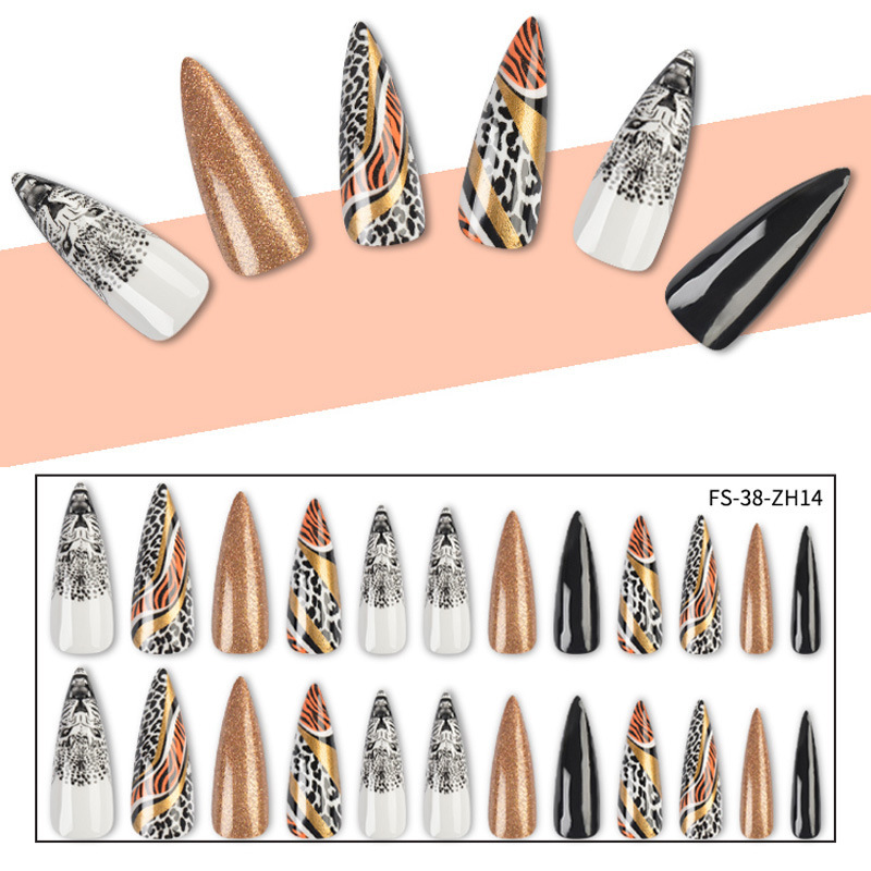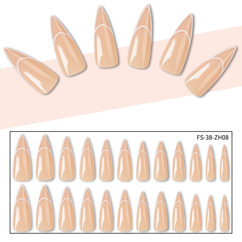 超长款法式芭蕾甲尖头美甲全贴穿戴假指甲成品贴片外贸欧美穿戴甲