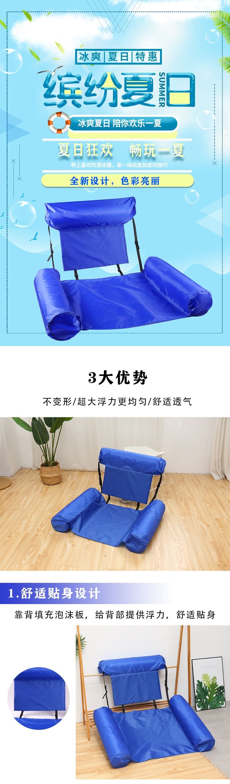 亚马逊新品水上充气躺椅浮床吊床可折叠双用靠背浮排跨境货源批发