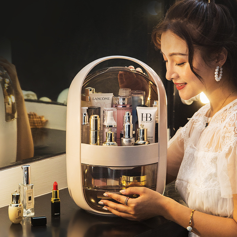 化妆品收纳盒 桌面防尘家用护肤品整理收纳箱 面膜首饰化妆箱