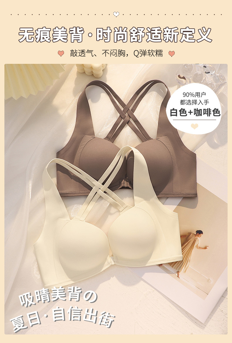 美背前扣内衣女小胸聚拢无痕无钢圈收副乳文胸罩薄款夏季2022新款