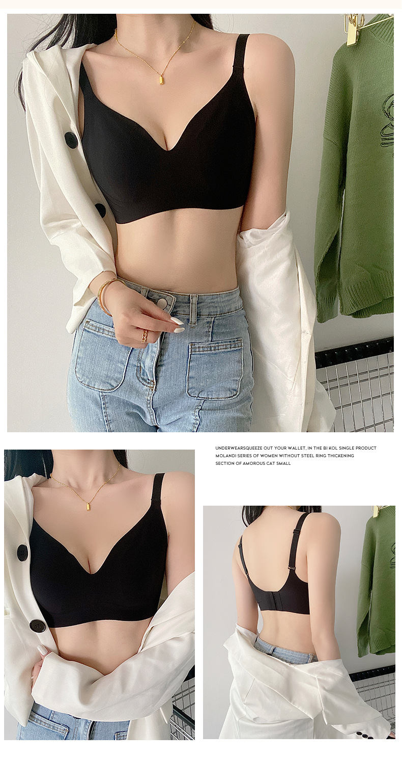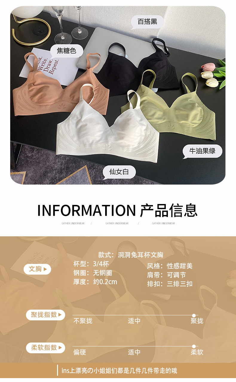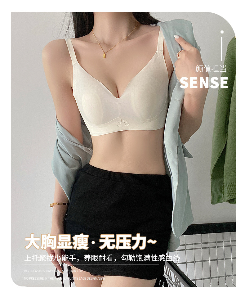 无痕内衣女超薄款大胸显小胸收副乳防下垂无钢圈兔耳朵文胸罩夏季