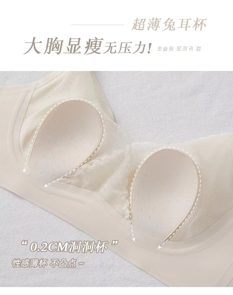 2023大胸显小内衣女薄款小胸聚拢缩胸防下垂收副乳无痕兔耳朵文胸