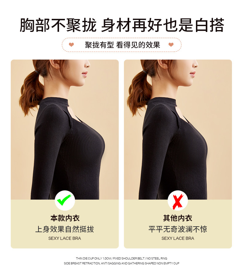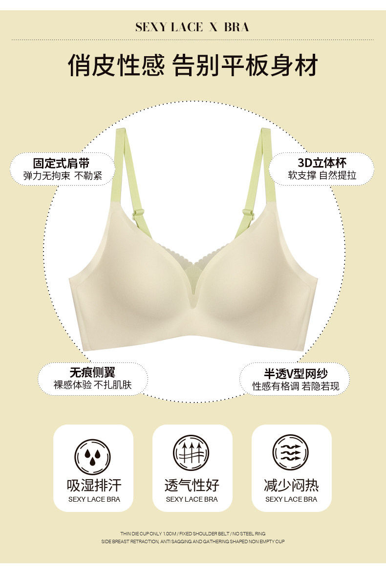 薄款内衣女无痕光面小胸聚拢胸罩无钢圈上托防下垂舒适透气文胸秋